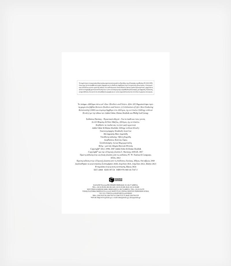 Ανανεωμένο και επικαιροποιημένο, το «Αδέλφια, όχι αντίπαλοι» προσφέρει πραγματικά πρωτότυπες ιδέες και σκέψεις για τις αδελφικές σχέσεις και μας δείχνει πώς μπορούμε να ενσωματώσουμε τις ιδέες αυτές στην καθημερινότητά μας.