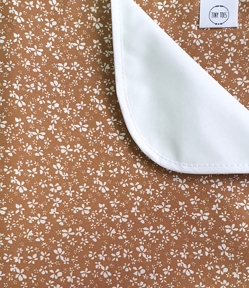 Η επάνω όψη είναι από ύφασμα βαμβακερό 100% και η κάτω όψη είναι από αδιάβροχη επίστρωση χωρίς φθαλικές ενώσεις κατάλληλο για βρέφη. Ραμμένο με ρέλι. Μπορεί να χρησιμοποιηθεί στην κούνια, για το άλλαγμα του μωρού σας επάνω στην αλλαξιέρα, στην τσάντα της μαμάς, στο καρότσι και στο ρηλάξ.