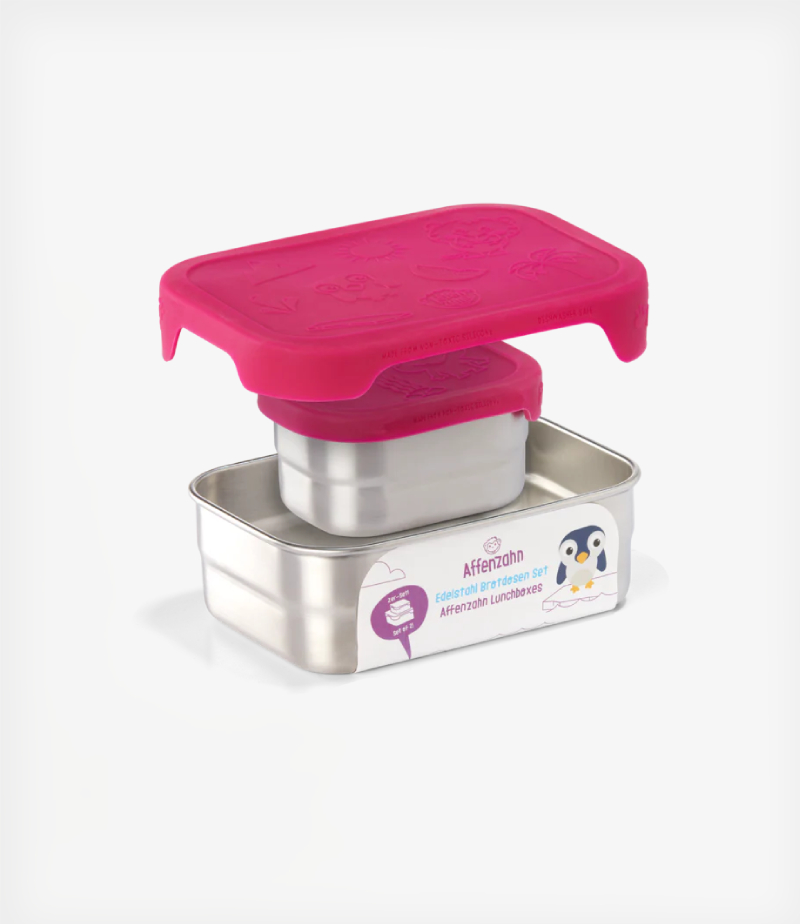 Ασφαλή και ανθεκτικά τάπερ φαγητού από ανοξείδωτο ατσάλι με σίγουρο κλείσιμο. Συνδυάζονται ιδανικά με τις τσάντες Affenzahn κι είναι κατάλληλα για καθημερινή χρήση στο σχολείο ή οπουδήποτε αλλού.