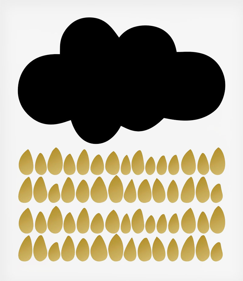 1 αυτοκόλλητο σύννεφο 30cm x 18cm και 58 σταγόνες βροχής 3,5cm.