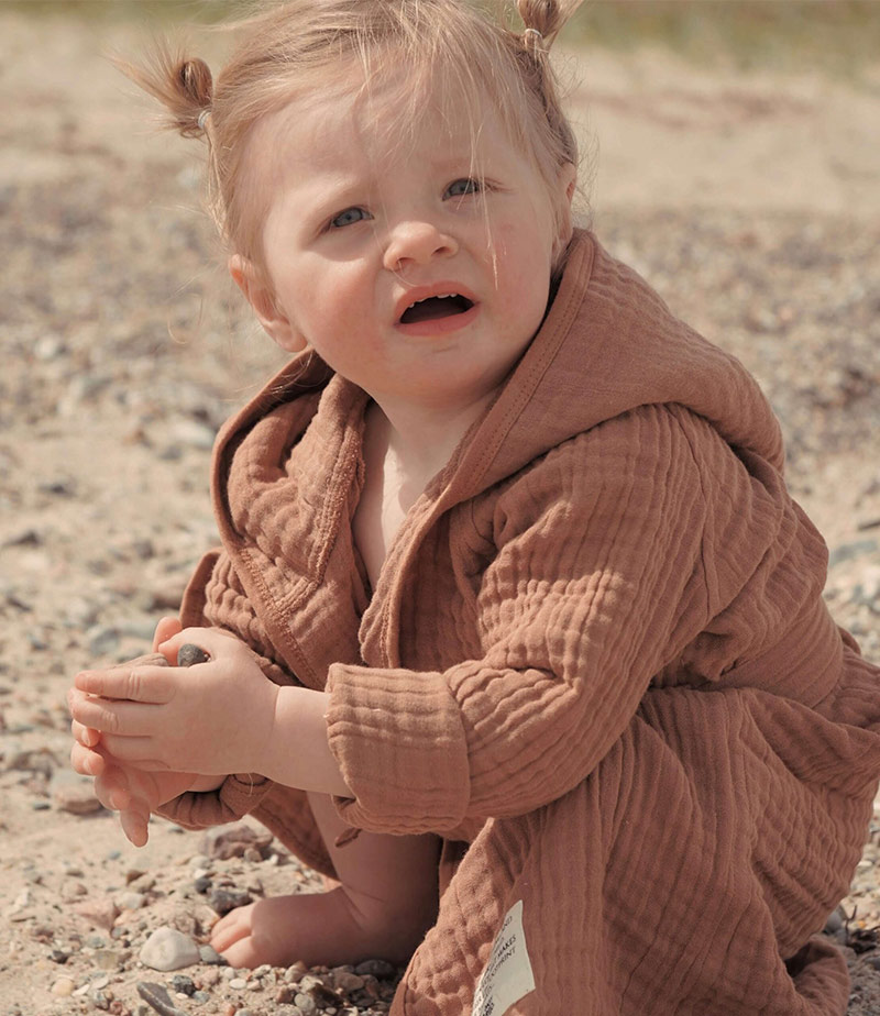 Τα μπουρνούζια Baby Bello είναι σχεδιασμένα σε απαλά γήινα χρώματα και κατασκευασμένα από 100% οργανικό βαμβάκι.