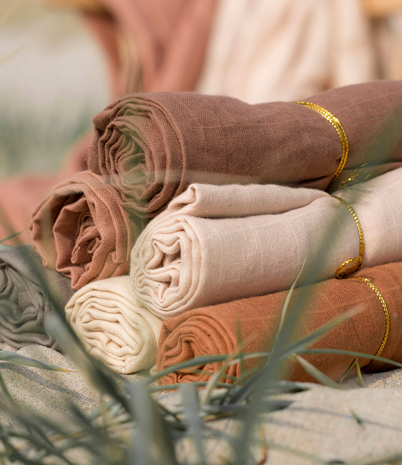 Οι μουσελίνες της Baby Bello είναι σχεδιασμένες σε απαλά γήινα χρώματα και κατασκευασμένα από 100% οργανικό βαμβάκι.