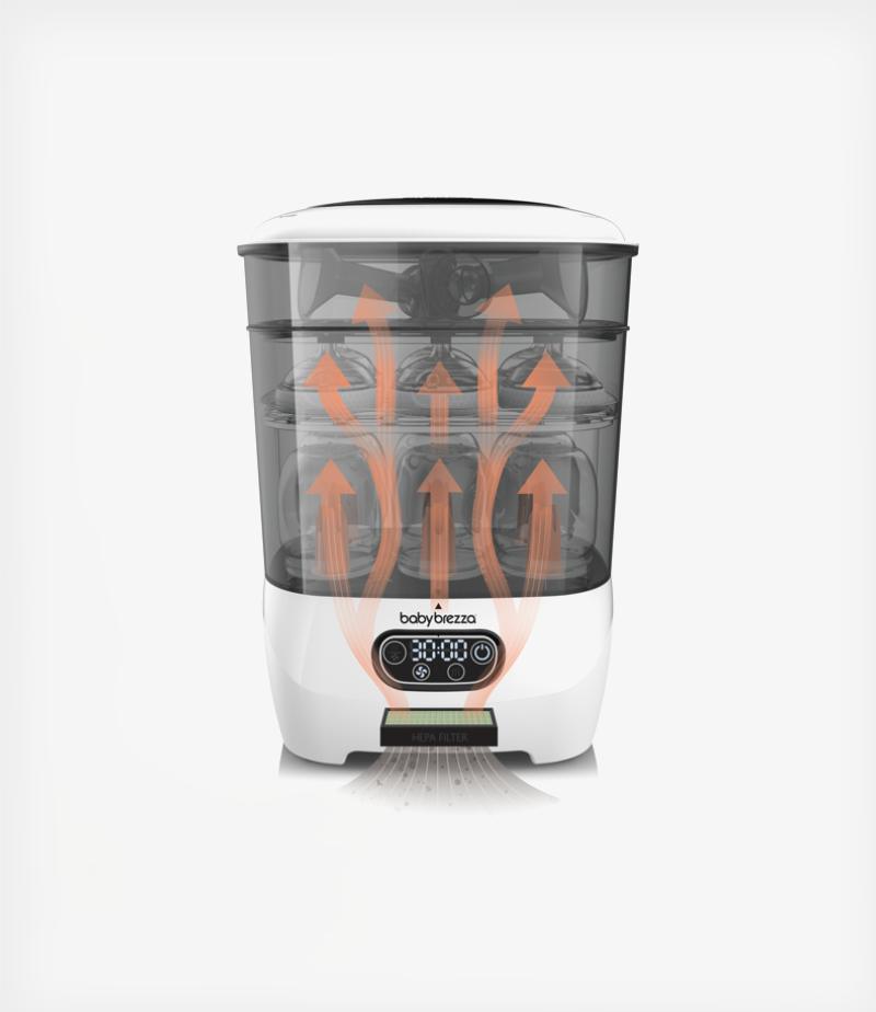 Αποστειρώνει και στεγνώνει αυτόματα 75% πιο γρήγορα, όλους τους τύπους και μάρκες μπιμπερό, μέρη θηλάστρου και αξεσουάρ. Μεγαλύτερη χωρητικότητα από οποιονδήποτε άλλο αποστειρωτή – χωράει 8 μπιμπερό, 2 πλήρη σετ θηλάστρου και αξεσουάρ από οποιαδήποτε μάρκα. Ο φυσικός ατμός σκοτώνει το 99,9% των μικροβίων. Τα αντικείμενα παραμένουν αποστειρωμένα για 24 ώρες όταν αφήνονται σε κλειστό αποστειρωτή.