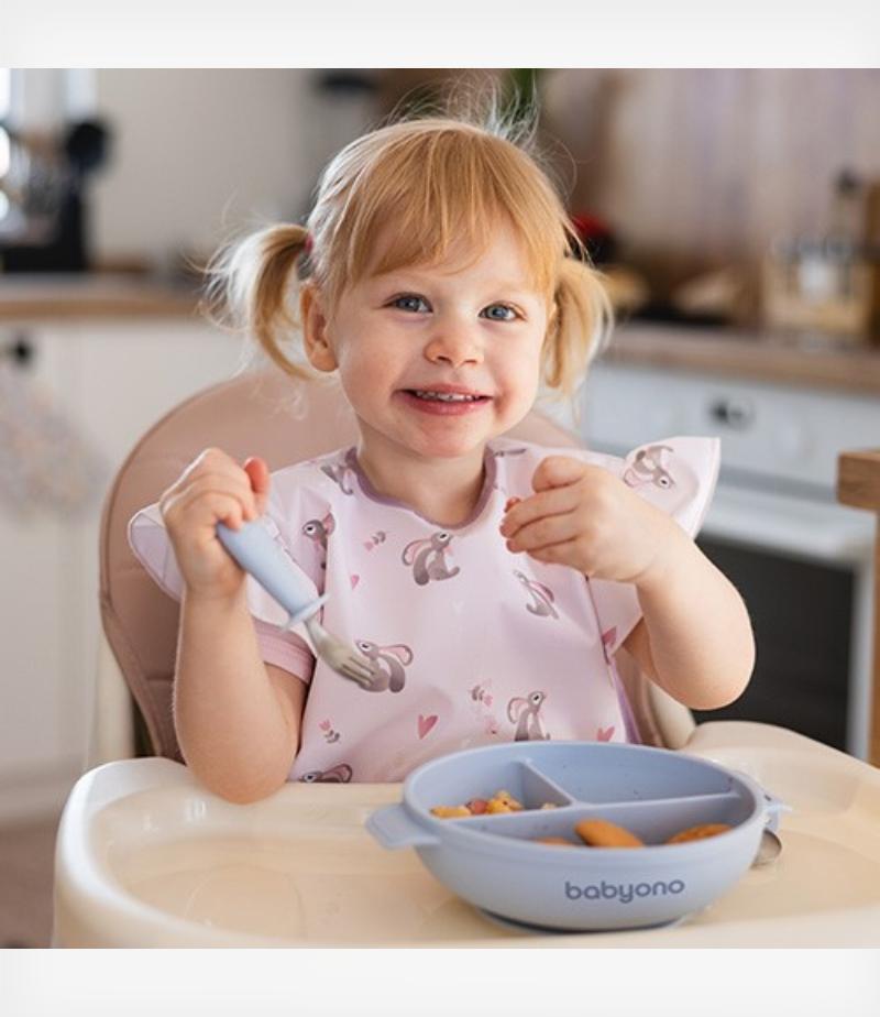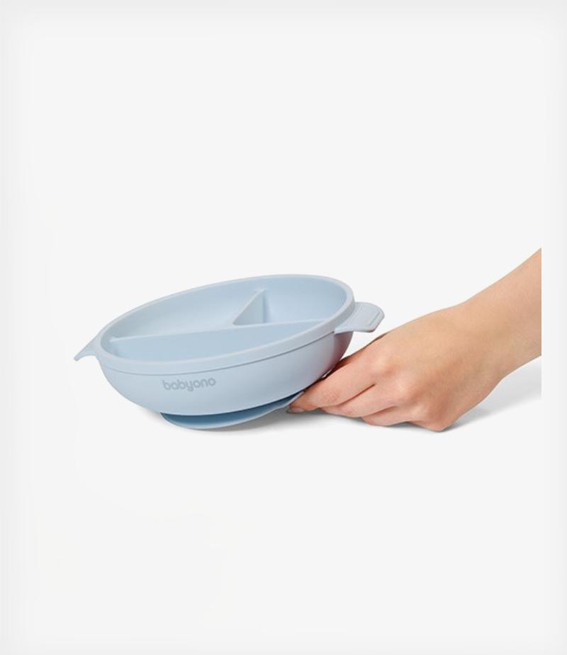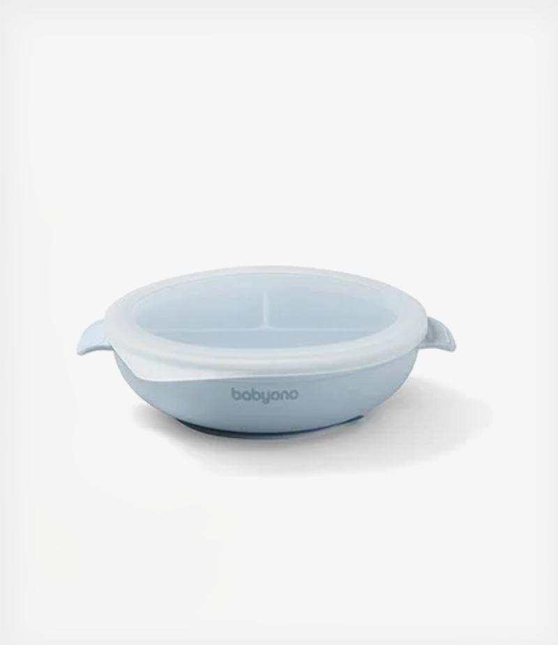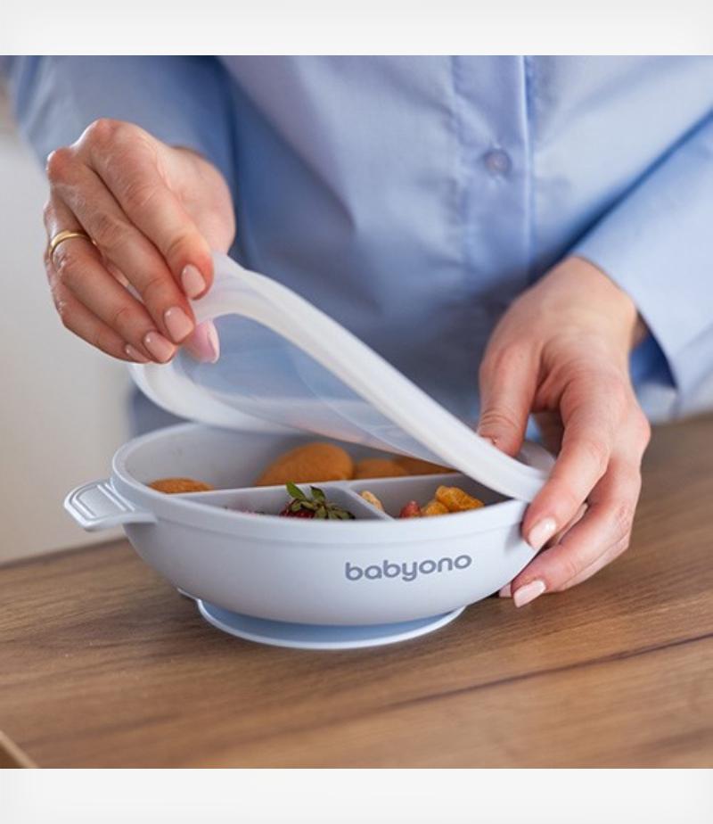 Babyono Πιάτο σιλικόνης με 3 θέσεις, καπάκι & βάση με βεντούζα – Μπλε