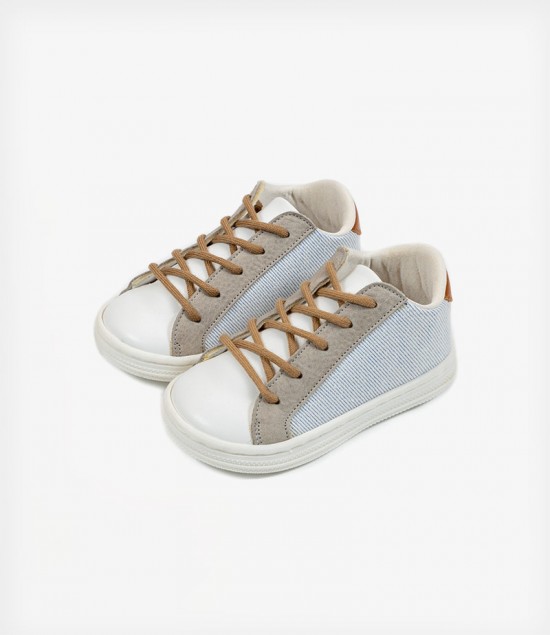 Υπέροχο δετό ανατομικό δερμάτινο παπούτσι Babywalker από δέρμα και ύφασμα υψηλής ποιότητας.