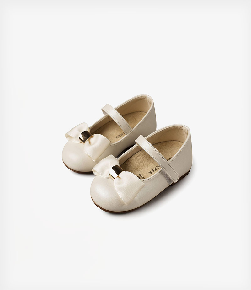 Υπέροχο ανατομικό γοβάκι Babywalker με σατέν φίογκο και χρυσή λεπτομέρεια.