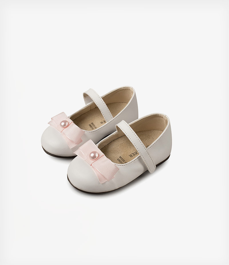 Υπέροχο ανατομικό γοβάκι Babywalker με ταφταδένιο φιόγκο, μονή μπαρέτα.