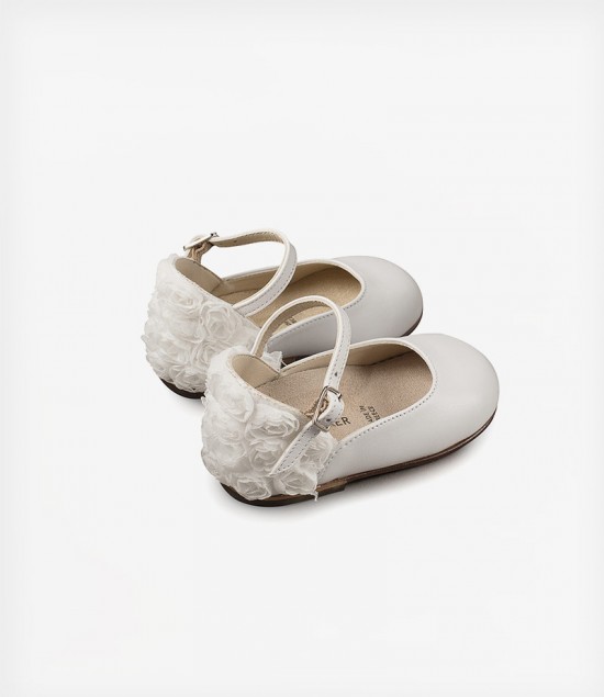 Υπέροχο παπούτσι αγκαλιάς Babywalker γαλλικό γοβάκι με φτέρνα από chiffon λουλούδια. Φτιαγμένο από δέρμα napa και δέρμα πέρλα.