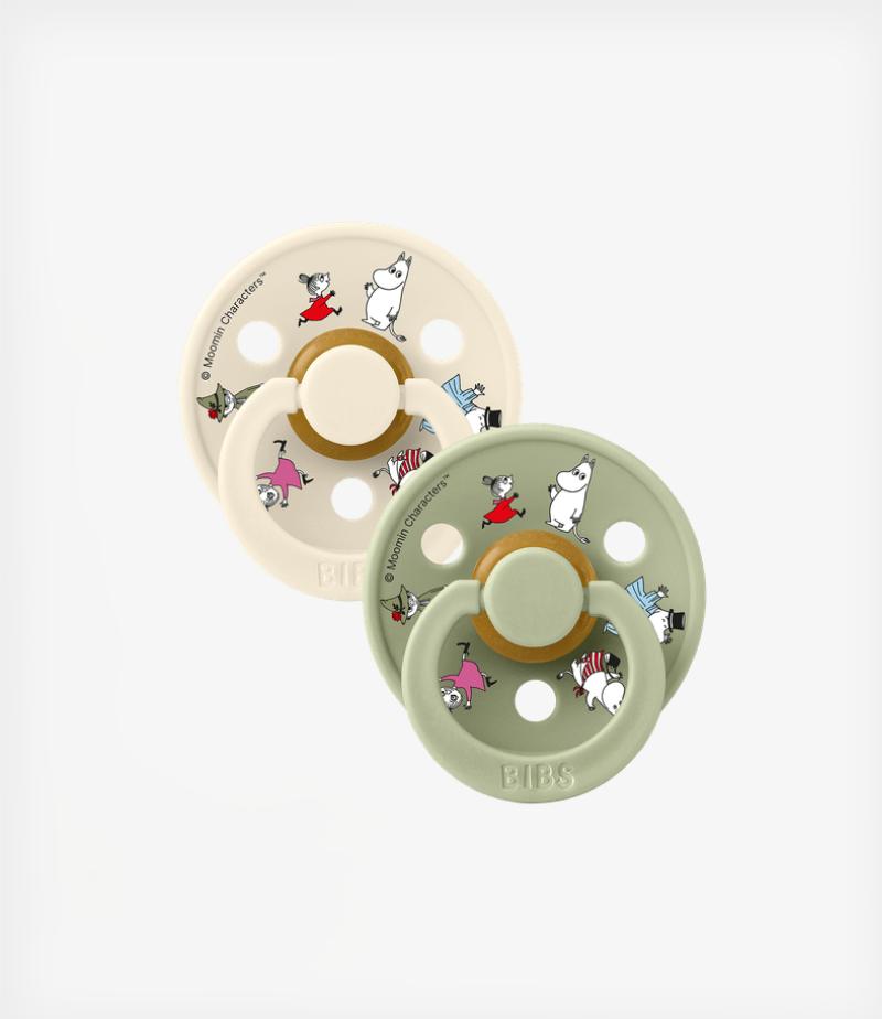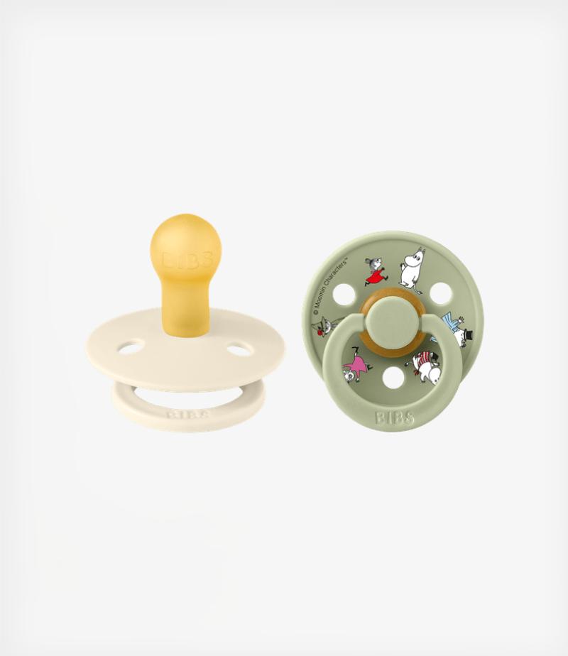 Bibs Πιπίλες Καουτσούκ Colour BIBS x Moomins Σετ No1 0-6m – Friends Ivory/Sage 2τμχ.