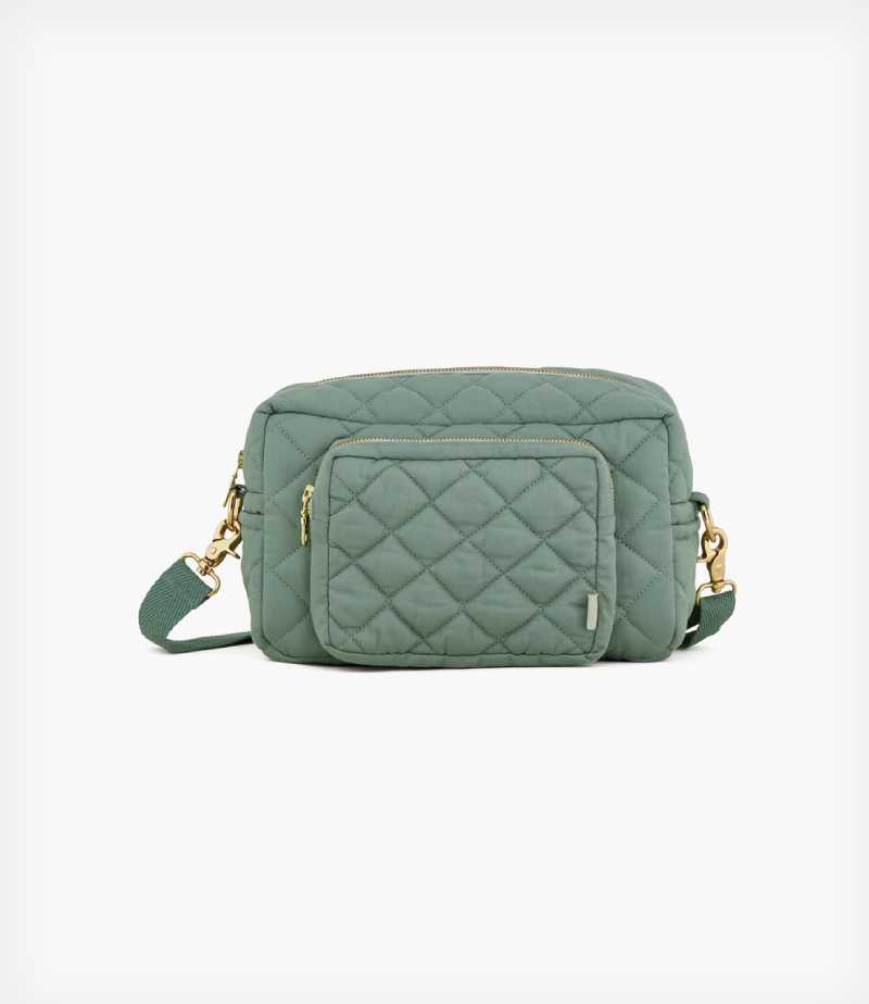 Πρακτική και κομψή, η καπιτονέ μικρή τσάντα αλλαγής που μπορεί να φορεθεί και ως χιαστί.