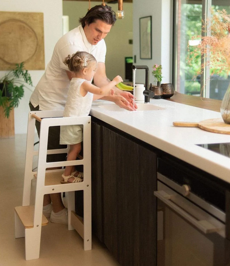 Χρησιμοποιήστε τον στην κουζίνα για να αφήσετε το παιδί σας να σας παρακολουθεί ή να σας βοηθάει να ετοιμάζετε το φαγητό. Είναι επίσης χρήσιμο στο μπάνιο για να το χρησιμοποιεί στο νιπτήρα για το βούρτσισμα των δοντιών ή το πλύσιμο των χεριών. Η στιβαρότητα της κατασκευής εγγυάται τη σταθερή και ασφαλή χρήση του προϊόντος, έχοντας τοποθετήσει μια ράβδο ασφαλείας στην πλάτη του παιδιού για την αποφυγή ανεπιθύμητης ανατροπής. Μπορεί να αντέξει με ασφάλεια βάρος έως και 100kg. Έτσι, ως ενήλικας μπορείτε να τον χρησιμοποιήσετε και εσείς οι ίδιοι. Είναι εύκολο στο καθάρισμα, ανθεκτικό στην υγρασία και σε καθημερινή χρήση.