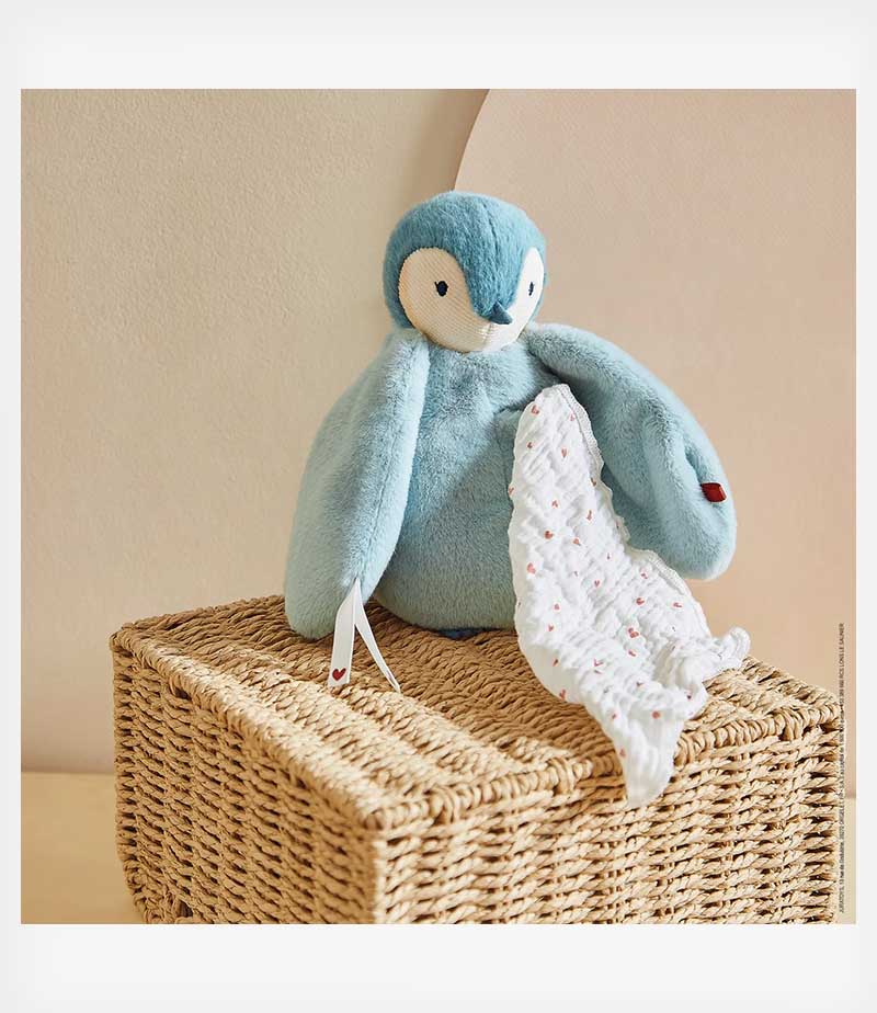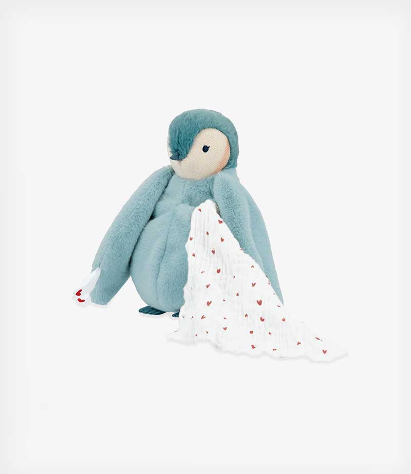 - Το πιγκουινάκι είναι φτιαγμένο από σούπερ μαλακό βελουτέ ύφασμα και το πανάκι από οργανικό βαμβάκι.