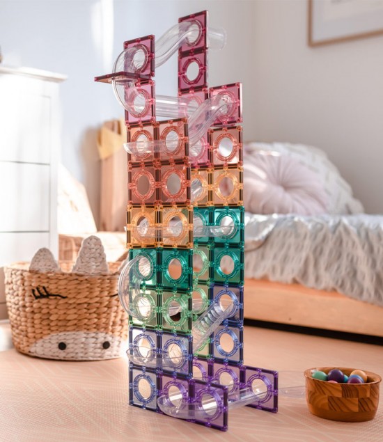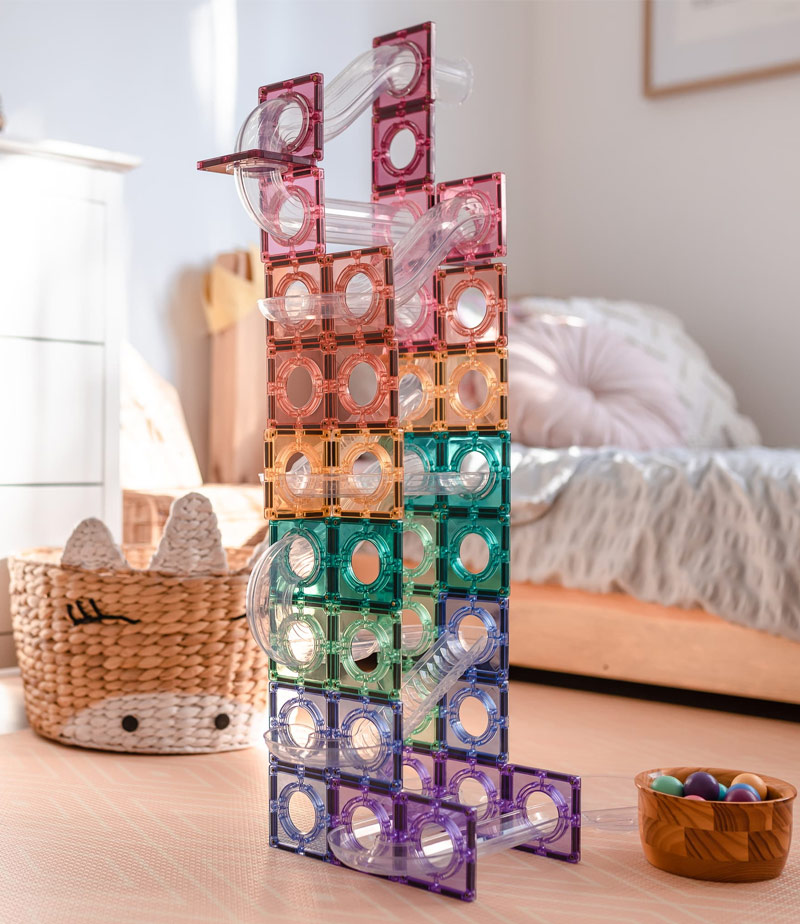 Ενήλικες και παιδιά θα απολαύσουν τις απεριόριστες ευκαιρίες εκμάθησης STEAM ανοιχτού τύπου που θα εμπνεύσει το πακέτο επέκτασης Pastel Ball Run 106 τεμαχίων.