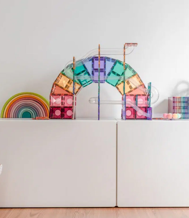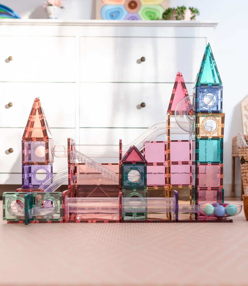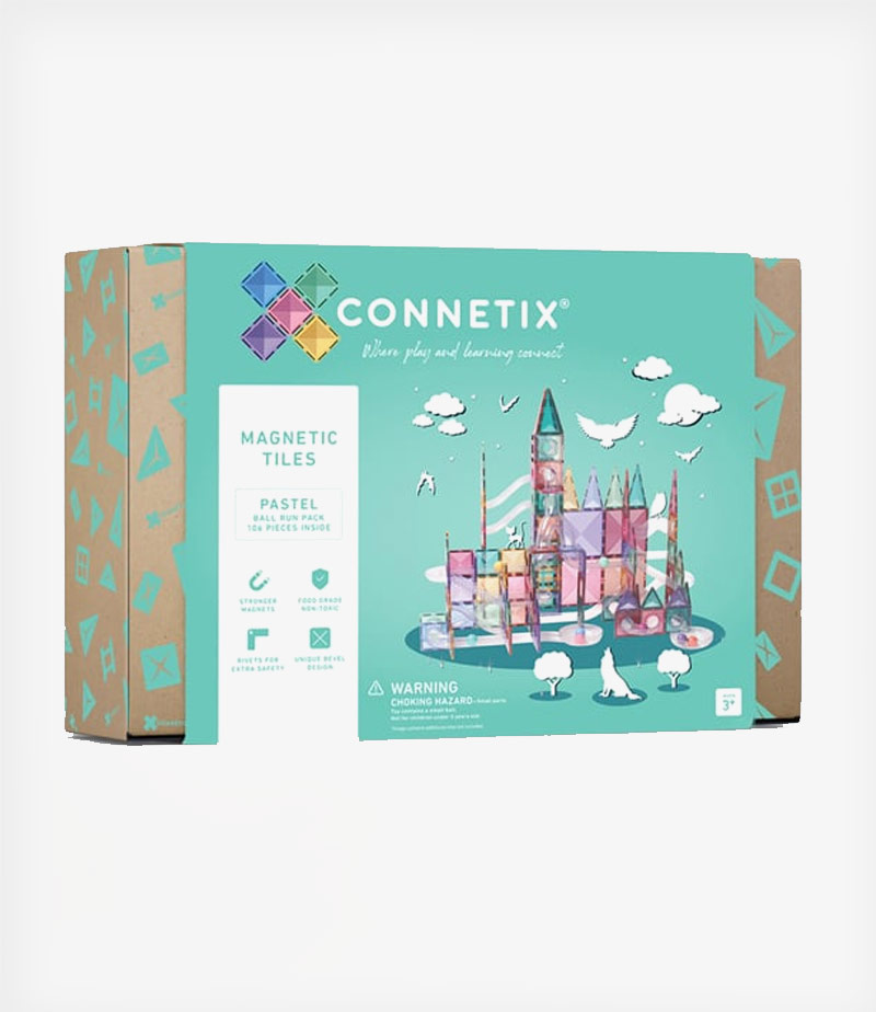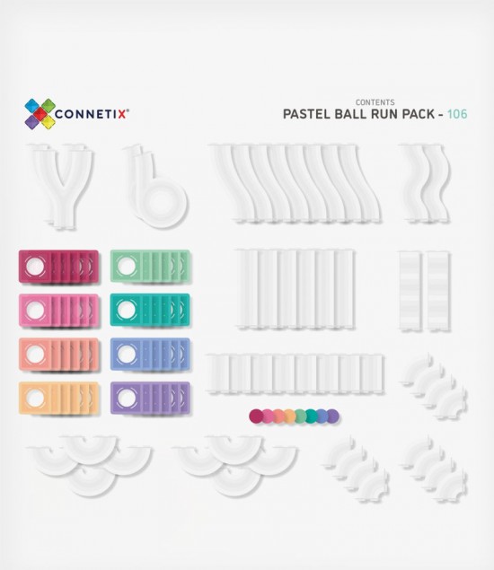 Το Connetix Pastel Ball Run Pack είναι ένα σετ 106 τεμαχίων με πρωταγωνιστές τα μοναδικά τουβλάκια μαγνήτες με τα αποκλειστικά σχεδιαστικά χαρακτηριστικά: