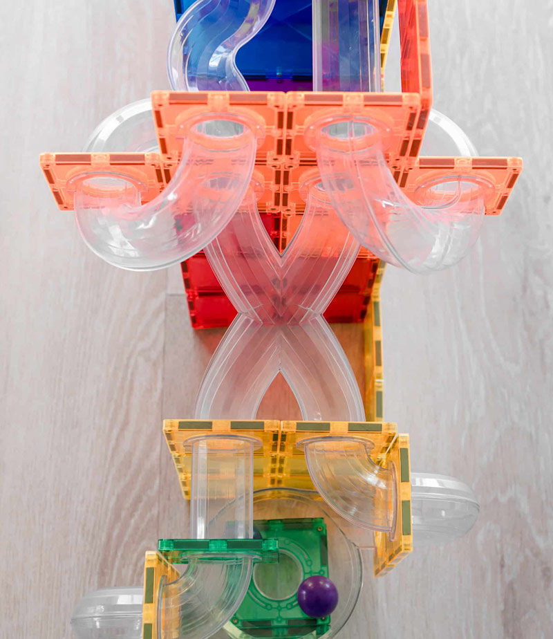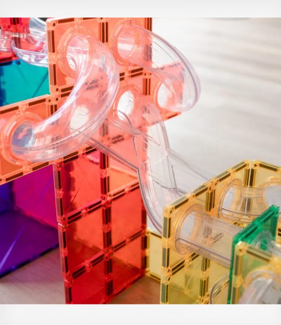Αυτό το πακέτο επέκτασης ανοιχτού τύπου περιλαμβάνει τετράγωνα μαγνητικά πλακίδια σύνδεσης, ξύλινες μπάλες συν μια σειρά από διαφανείς, σωλήνες που σας επιτρέπουν να εξερευνήσετε την κίνηση και τη βαρύτητα όπως ποτέ άλλοτε – ένα σχήμα Χ για ανακατεύθυνση και περιστροφή της δράσης, διπλή είσοδος μπολ για νέους τρόπους συλλογικού παιχνιδιού και αγώνων, σπειροειδή κομμάτια για διασκέδαση με το eye tracking, συν 1/2 και 1/4 κομμάτια για ανατροπές και στροφές.