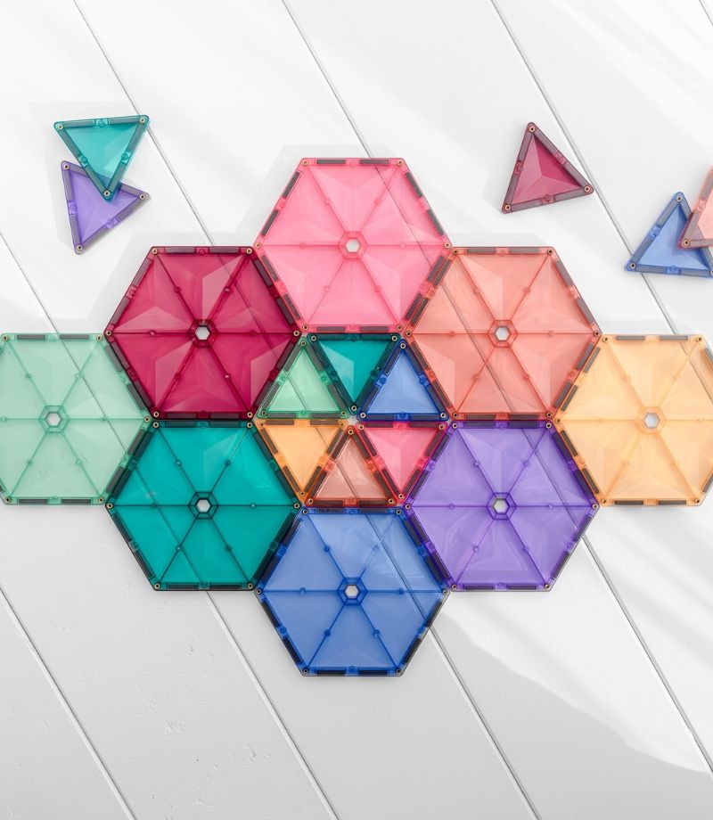 Προσθέστε τα παστέλ εξάγωνα και τα τρίγωνά μας στη συλλογή σας και απολαύστε τη δημιουργία μοτίβων, πυραμίδων, δωδεκάγωνων, μάνταλα κ.α.
