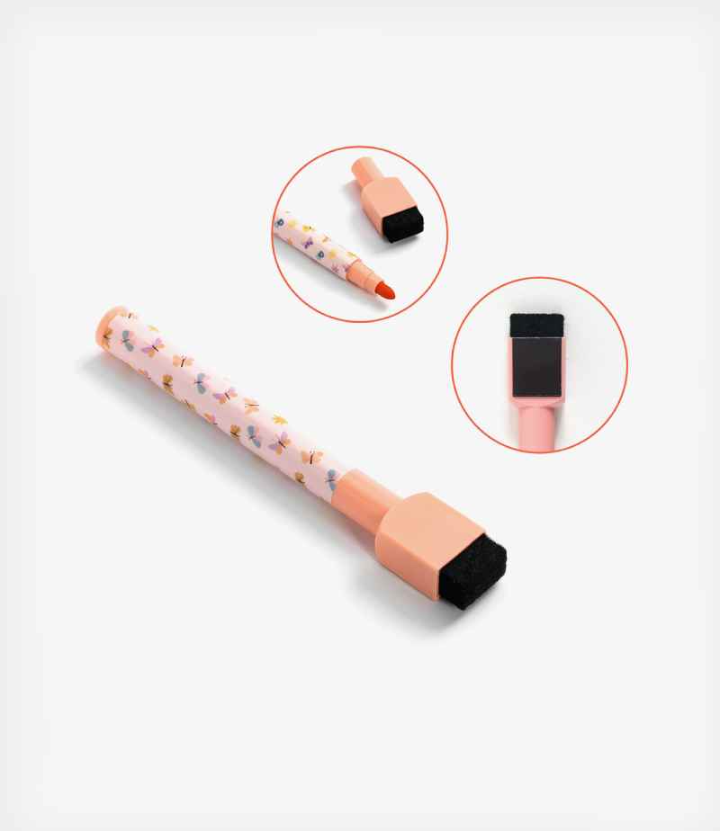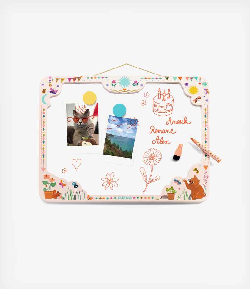Μαγνητικός, κρεμαστός πίνακας της εταιρίας Djeco με ξύλινο πλαίσιο. Το σετ περιλαμβάνει 1 πίνακα και 1 μαρκαδόρο με μαγνητικό καπάκι-σφουγγάρι.