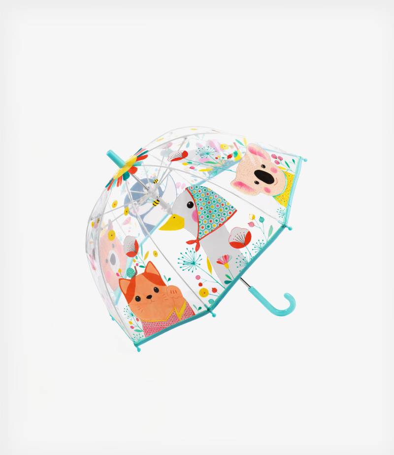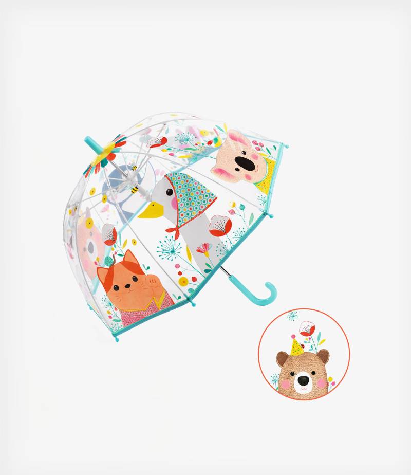 Η σειρά με τις διαφανείς ομπρέλες από την εταιρία Djeco ήρθε για να φωτίσει τις βροχερές μέρες του χρόνου. Το διάφανο PVC υλικό της ομπρέλας επιτρέπει στο παιδί να βλέπει και να παρατηρεί γύρω του, ενώ ο ψηλός θόλος της παρέχει μεγάλη προστασία από τις σταγόνες της βροχής.