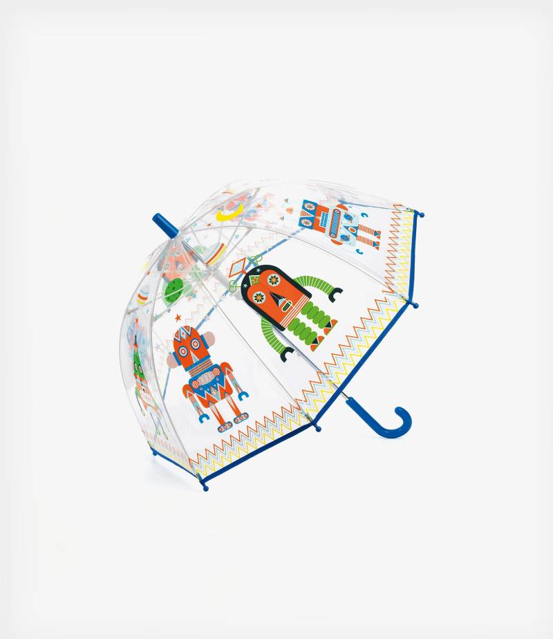Η σειρά με τις διαφανείς ομπρέλες από την εταιρία Djeco ήρθε για να φωτίσει τις βροχερές μέρες του χρόνου. Το διάφανο PVC υλικό της ομπρέλας επιτρέπει στο παιδί να βλέπει και να παρατηρεί γύρω του, ενώ ο ψηλός θόλος της παρέχει μεγάλη προστασία από τις σταγόνες της βροχής.