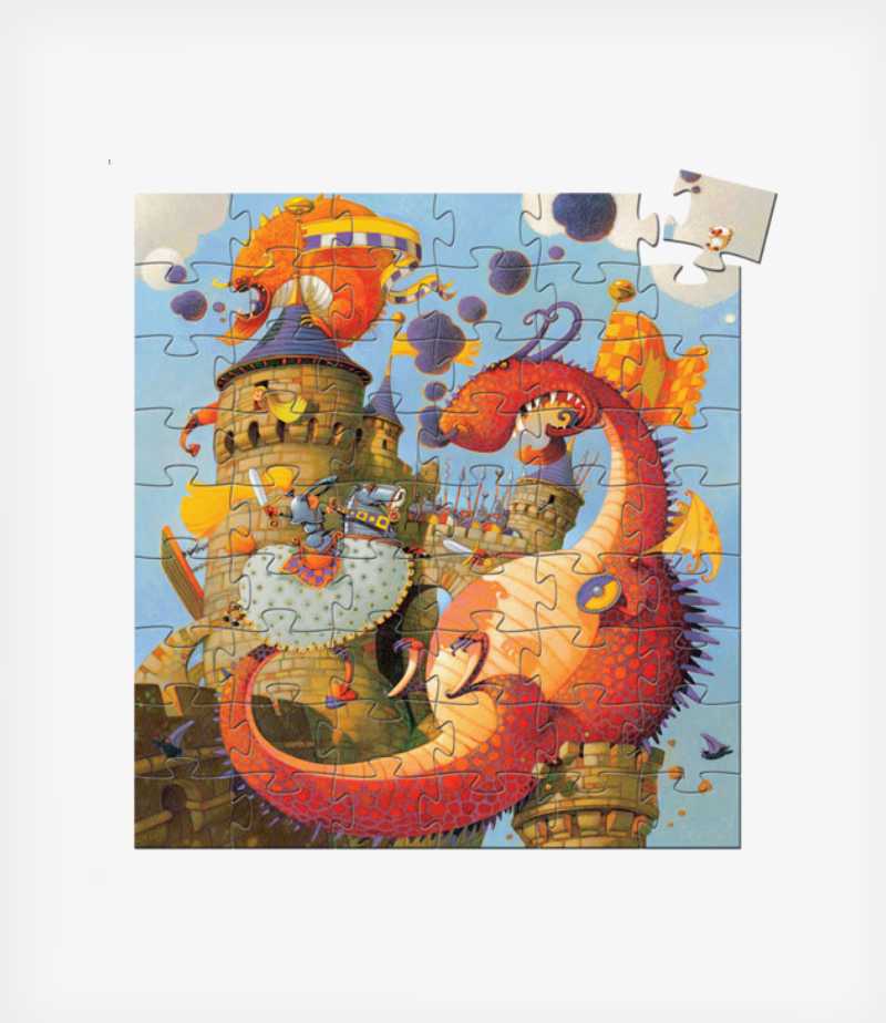Ο πολύχρωμος δράκος ανοίγει τα φτερά του και κουνά τη μακριά ουρά του όταν έχουν συμπληρωθεί τα σωστά κομμάτια του παζλ! Δημιουργικό, σχηματικό παζλ με 54 κομμάτια από τη Γαλλική εταιρεία Djeco από χοντρό πεπιεσμένο χαρτόνι.