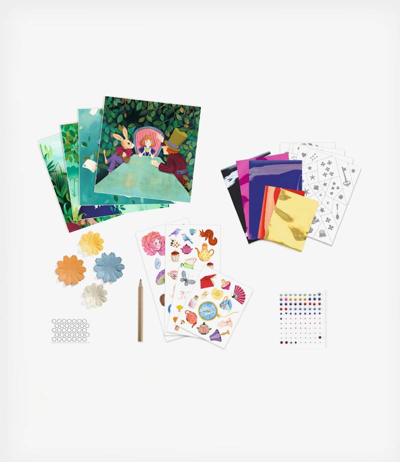 Στο τέλος αυτής της δημιουργικής διαδικασίας, τα παιδιά θα έχουν συνθέσει 4 τρισδιάστατες εικόνες με σκηνές από το κλασσικό παραμύθι της Αλίκης στη Χώρα των Θαυμάτων που μπορούν να χρησιμοποιήσουν για να στολίσουν το δωμάτιο τους. Ένα ολοκληρωμένο σετ 4 σε 1 χειροτεχνιών της εταιρίας Djeco, που καλλιεργεί την δημιουργικότητα των παιδιών και αναπτύσσει δεξιότητες προσοχής, συγκέντρωσης και λεπτής κίνησης.