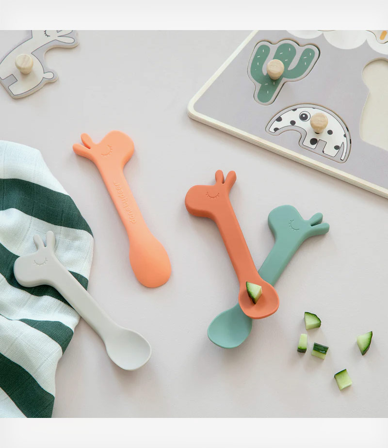 Όταν το μικρό σας τρώει μόνο του, είναι ωραίο να έχει μία συντροφιά στο χέρι! Με αυτό το πακέτο 2 κουταλιών σιλικόνης το μικρό σας μπορεί πάντα να απολαμβάνει το γεύμα του με τη Lalee. Τα κουτάλια είναι κατασκευασμένα από σιλικόνη που τους δίνει ωραίο κράτημα για τα μικρά χεράκια. Το μέγεθος του παιδικού κουταλιού είναι ιδανικό για ένα ανεξάρτητο νήπιο που μαθαίνει να τρέφεται μόνο του και για τα επόμενα χρόνια.