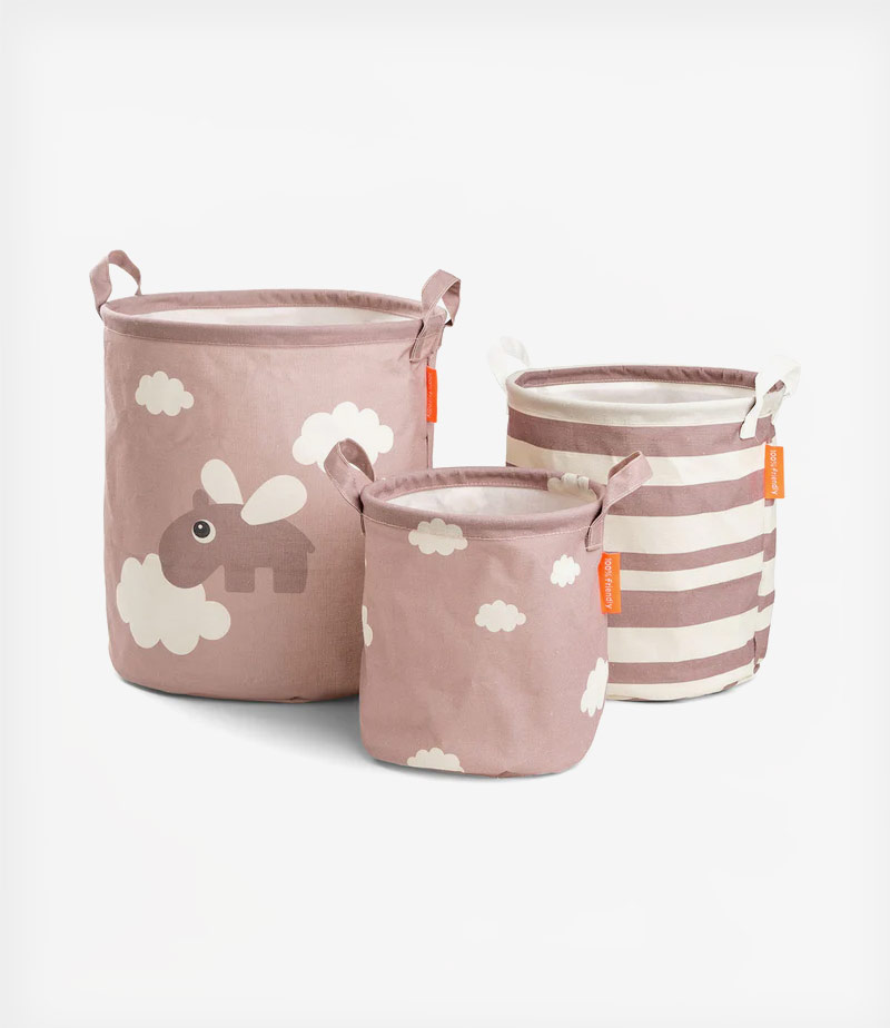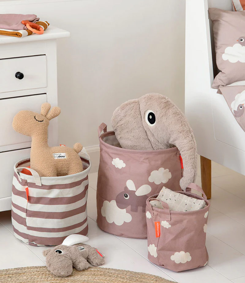 Τα καλάθια είναι διακοσμημένα με χαρούμενα σύννεφα και είναι ιδανικά για την αποθήκευση παιχνιδιών, ρούχων και αξεσουάρ.Οι δύο λαβές τους διευκολύνουν τη μεταφορά και τη μετακίνηση.