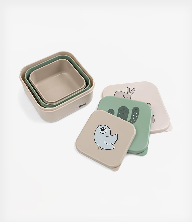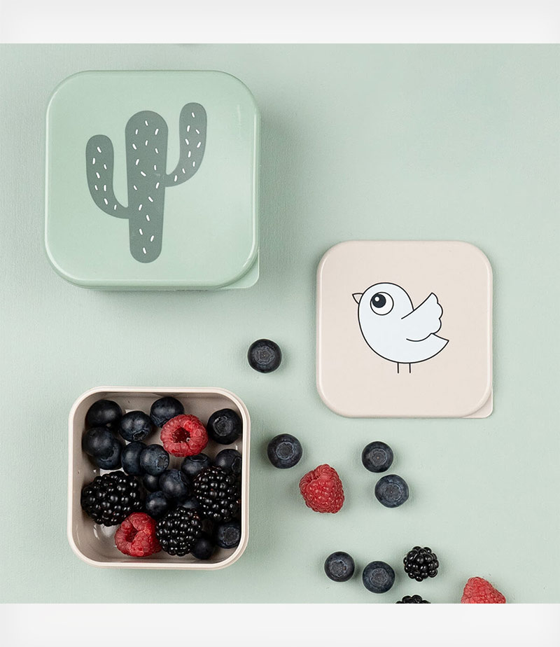 Αποθηκεύστε το αγαπημένο σνακ ή φαγητό σε αυτό το όμορφο σετ! Φρούτα, λαχανικά, μπισκότα, γλυκά, σάντουιτς μπορούν εύκολα να χωρέσουν μέσα στα δοχεία.