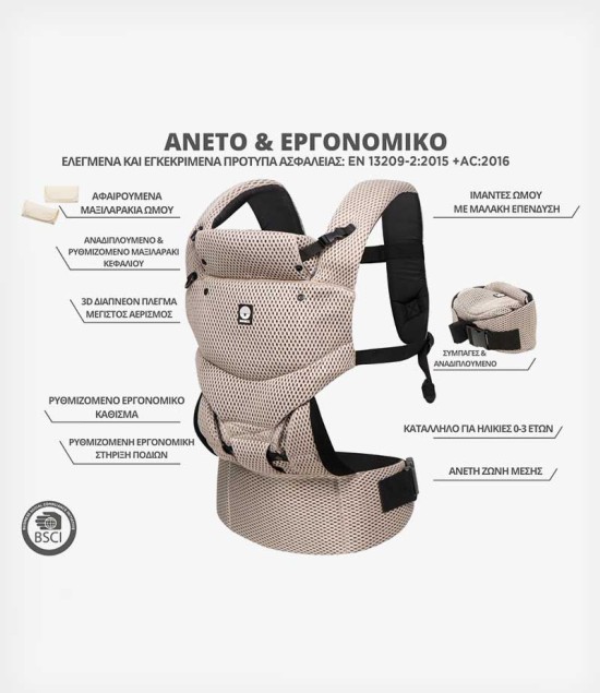 Όποιο τρόπο και αν διαλέξετε, με το στιβαρό υλικό του και τις επιλογές ρύθμισης των ιμάντων και της θέσης κεφαλιού, θα είστε πάντα σίγουροι ότι το μωρό στηρίζεται πάνω σας με ασφάλεια και άνεση, ενώ ο δικός σας κορμός δε κινδυνεύει από μυϊκούς τραυματισμούς και καταπόνηση.