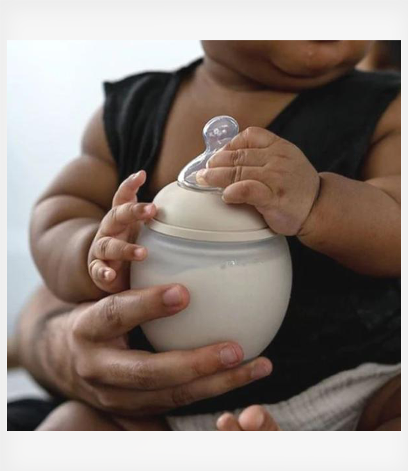 – Από ιατρική σιλικόνη: ένα ακριβό υλικό που είναι απόλυτα βιοσυμβατό, από τα ελάχιστα στον κόσμο που δεν επιβαρύνει με τοξίνες τον οργανισμό και χρησιμοποιείται σε προηγμένα χειρουργικά εμφυτεύματα. Είναι 100% ασφαλές, αφού δεν επιτρέπει σε απολύτως κανένα μικροσωματίδιο από το πλαστικό να περάσει στο γάλα του μωρού.