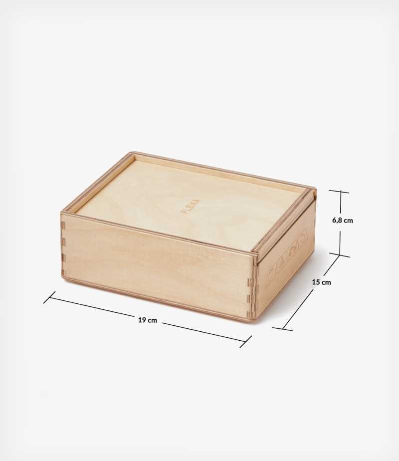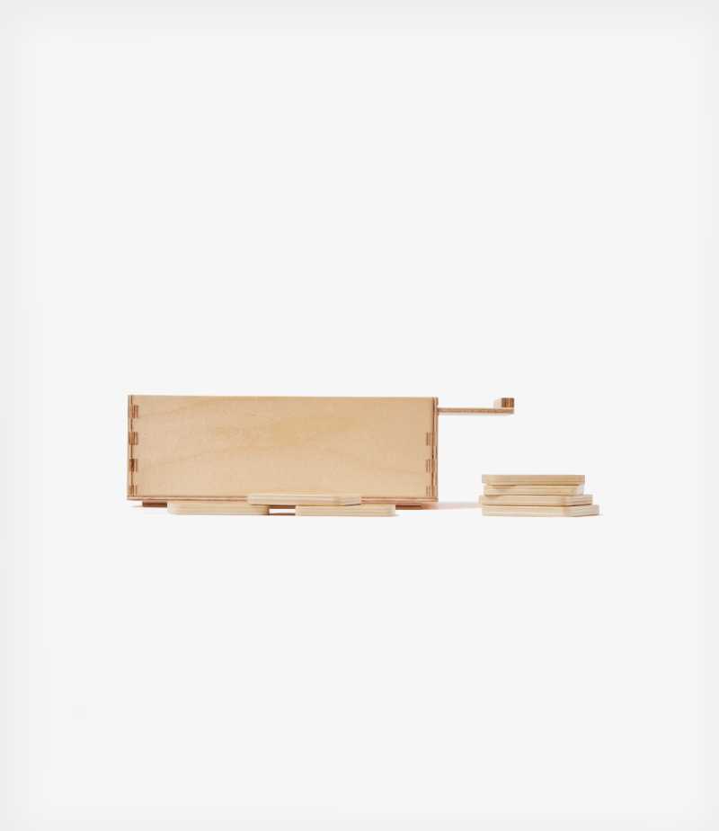 Κι όταν κουραστείς βάλε όλα τα κομμάτια στο ξύλινο κουτί τους. Στο πλάι του υπάρχουν εικόνες από το παιχνίδι, ώστε να μπορείς να βρίσκεις εύκολα το αγαπημένο σου παιχνίδι!