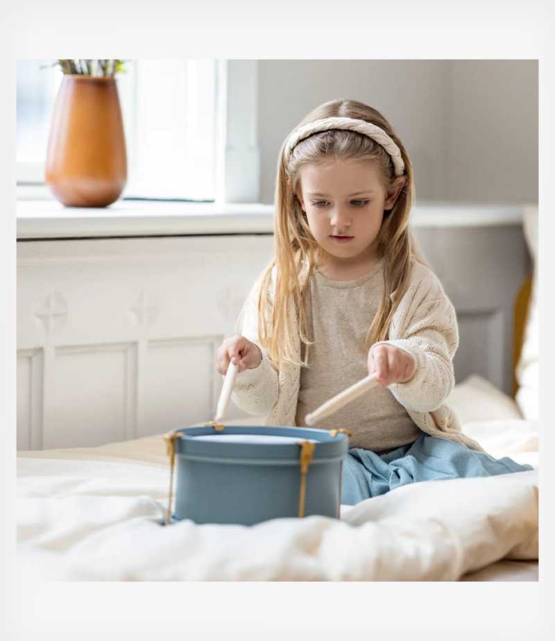 Η εξοικείωση με τον χρόνο, τον ρυθμό και τη ρυθμική ακρίβεια αποτελούν σημαντικές πτυχές της πρώιμης γλωσσικής ανάπτυξης. Το χτύπημα του τυμπάνου απαιτεί συντονισμό τόσο του σώματος όσο και του μυαλού, και μόλις αποκτηθεί, το παιδί σας μπορεί να χρησιμοποιήσει το τύμπανο για να εκφράσει κάθε είδους σκέψεις και συναισθήματα.