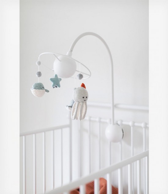 Νέο, κομψό μόμπιλε από τη Flow που θα ηρεμήσει το μωρό σας ακούγοντας τις γλυκές μελωδίες και βλέποντας τους φίλους του ωκεανού.