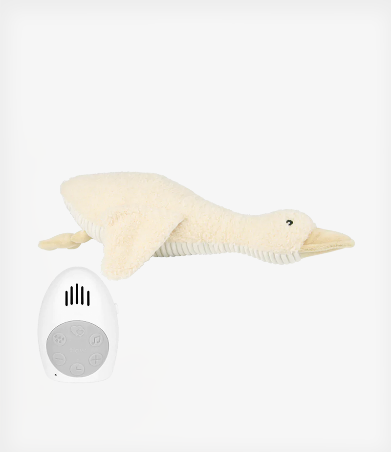 Βοηθήστε το μωρό να αποκοιμηθείγαλήνια, συντροφιά με την χήνα Liva. Η υφασμάτινη χήνα αναπαράγει διάφορους ήχους, ανάμεσά τους και τους χτύπους της καρδιάς, που ηρεμούν φυσικά το μωρό. Επιπλέον, μπορείτε να επιλέξετε τον λευκό ήχο από καταρράκτες ή 2 διαφορετικά νανουρίσματα.