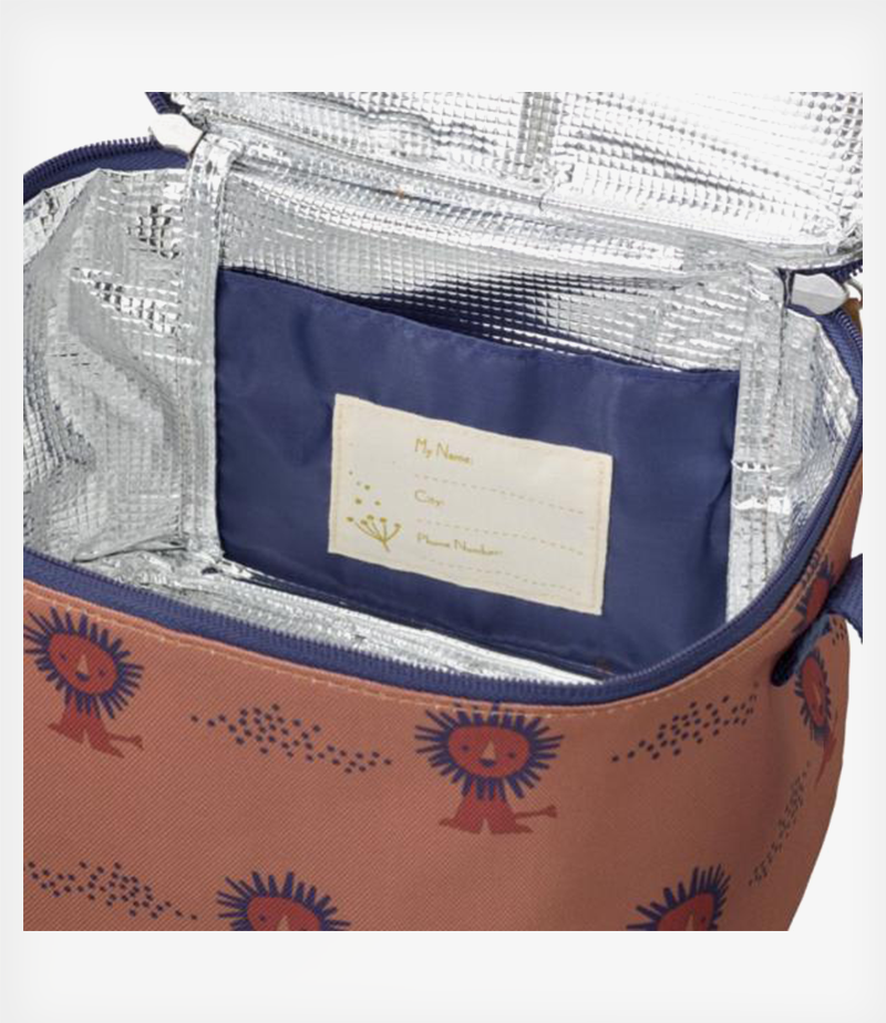 Διαθέτει μεγάλο χώρο ώστε να χωρέσετε γενναιόδωρα γεύματα και ροφήματα μέσα σε αυτό, μια τσεπούλα για τα μαχαιροπίρουνά σας και ένα ταμπελάκι για να γράψετε το όνομα του παιδιού για να μπορέσει να ξαναβρεί τον …κηδεμόνα του σε περίπτωση απώλειας.