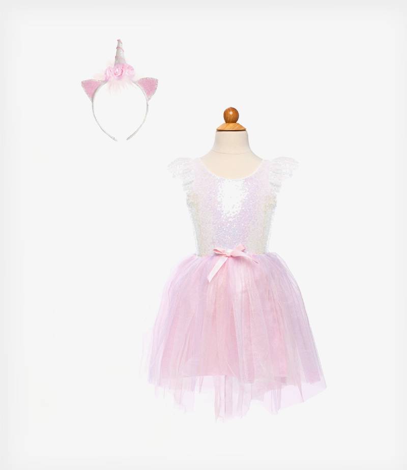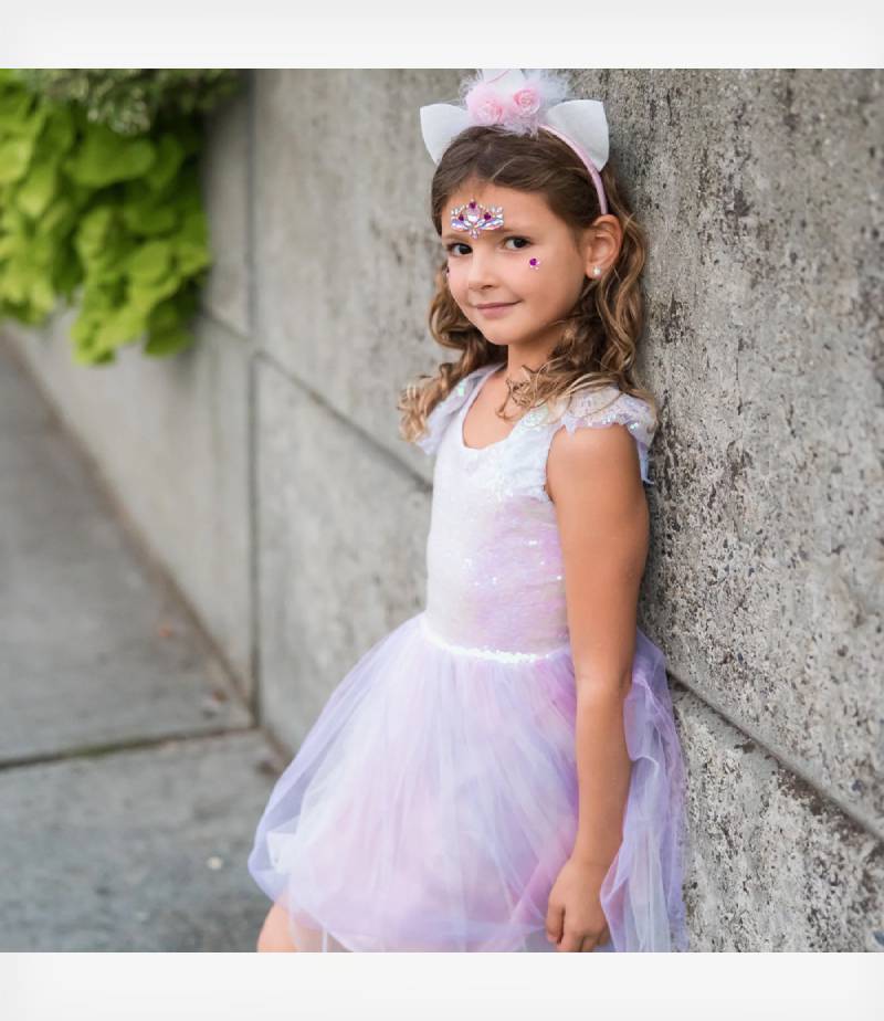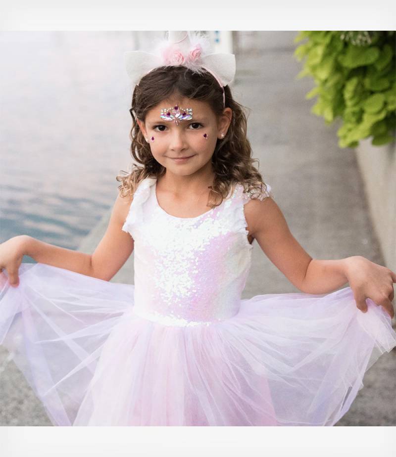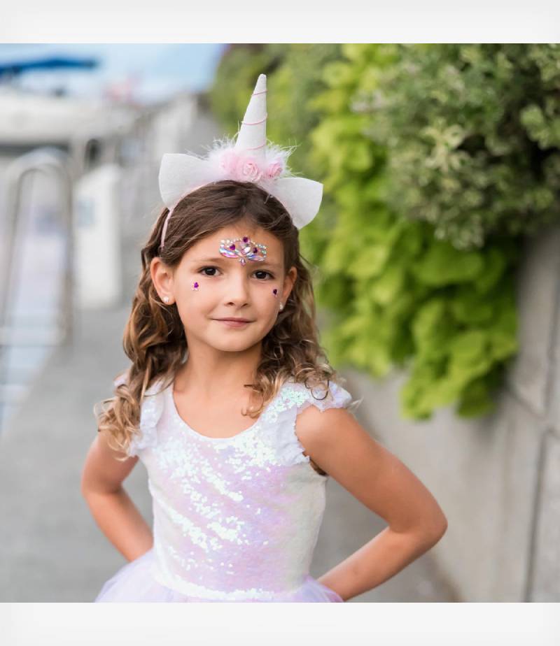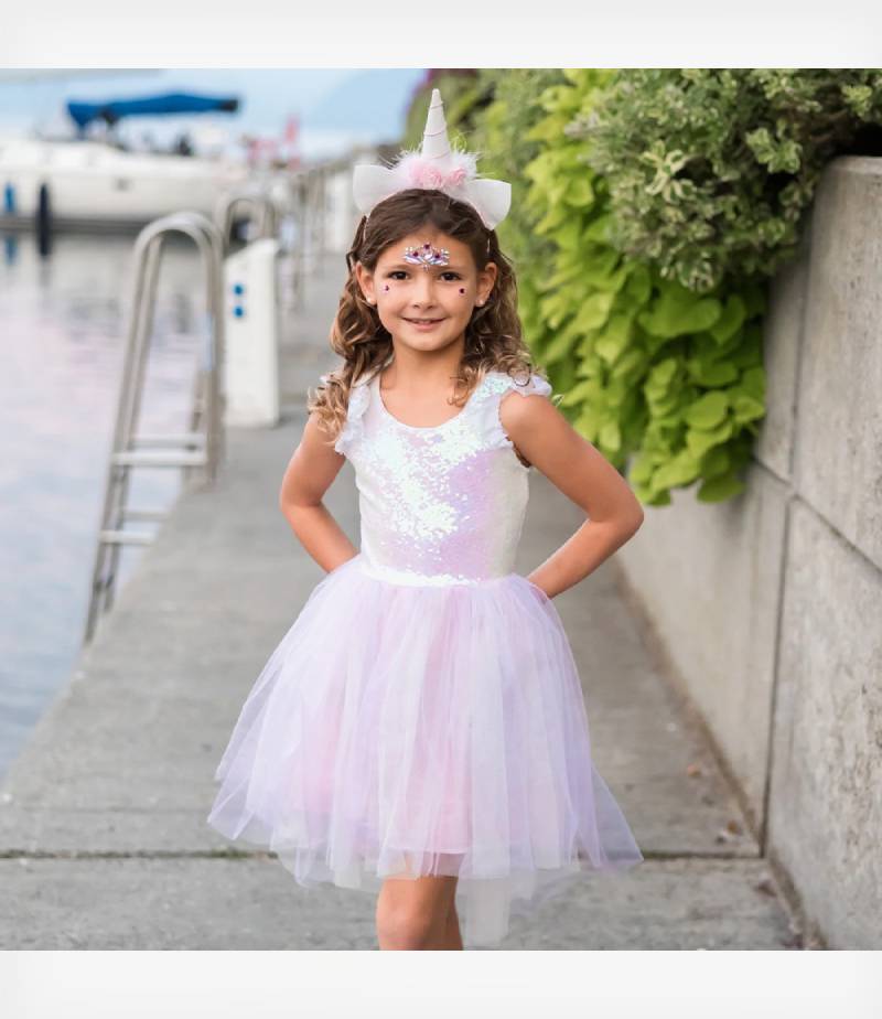 Μπείτε σε έναν μαγικό κόσμο με αυτή την εντυπωσιακή στολή μονόκερου, από την εταιρεία Great Pretenders. Αυτό το μαγευτικό φόρεμα είναι μια συμφωνία λάμψης και κομψότητας, ιδανική για τις ιδιαίτερες στιγμές του παιδιού σας.