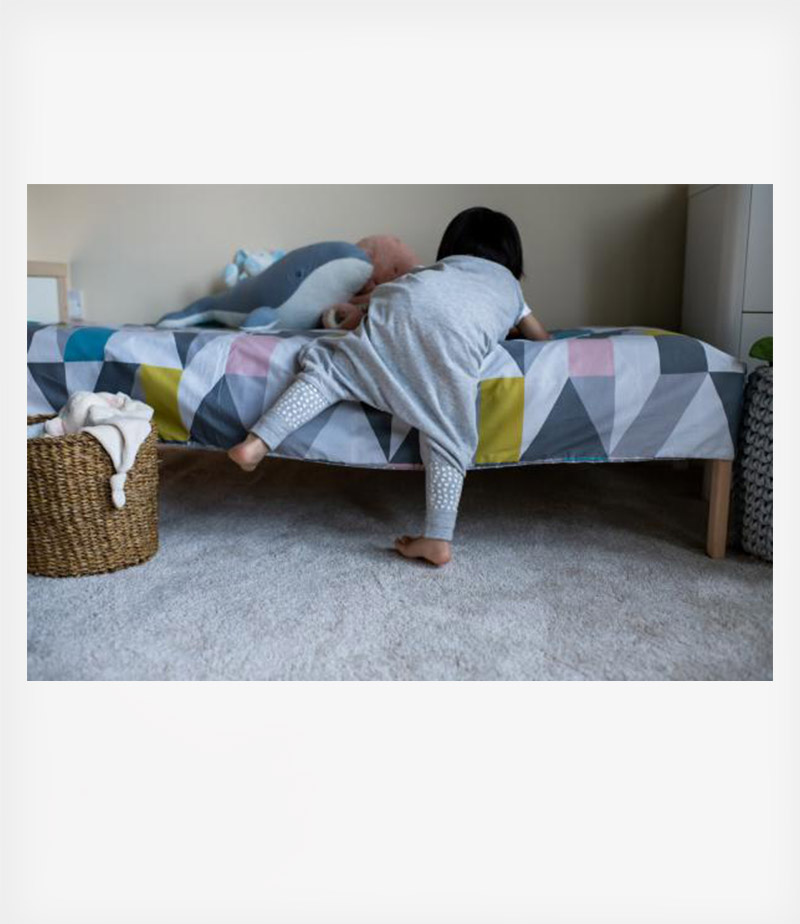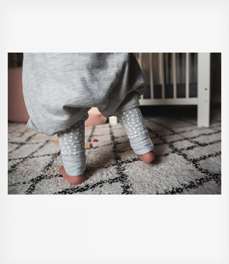 Το Steppee έχει ποδαράκια με αντιολισθητικά σημεία στο κάτω μέρος που τους δίνει την ελευθερία κινήσεων, να τεντωθούν και να τρέξουν στις δικές τους δραστηριότητες! Mπορείτε να αφήσετε τα ποδαράκια του ξυπόλητα ή να τα καλύψετε γυρνώντας το ύφασμα.