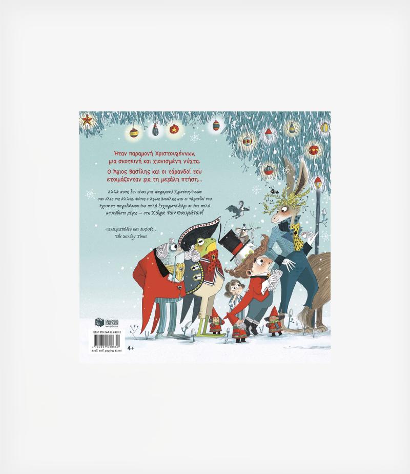 Η ιστορία μας είναι εμπνευσμένη από το κλασικό ποίημα «Ήταν η νύχτα πριν από τα Χριστούγεννα», αλλά σ’ αυτή την ευφάνταστη παραλλαγή της ο Άγιος Βασίλης κατεβαίνει από την καμινάδα και γνωρίζει χαρακτήρες όπως ο Τρελοκαπελάς, η Γάτα του Τσεσάιρ και η Βασίλισσα των Καρδιών. Και πού είναι η Αλίκη; Μήπως κρύβεται κάτω από το τραπέζι;