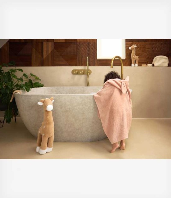 Το μαλακό πανί είναι απαλό στο ευαίσθητο δέρμα του μωρού και απορροφά καλά την υγρασία, ώστε να μπορείτε να το στεγνώσετε σε ελάχιστο χρόνο. Μετά τη χρήση, μπορείτε εύκολα να το κρεμάσετε από τη θηλιά στο εσωτερικό του λαιμού.
