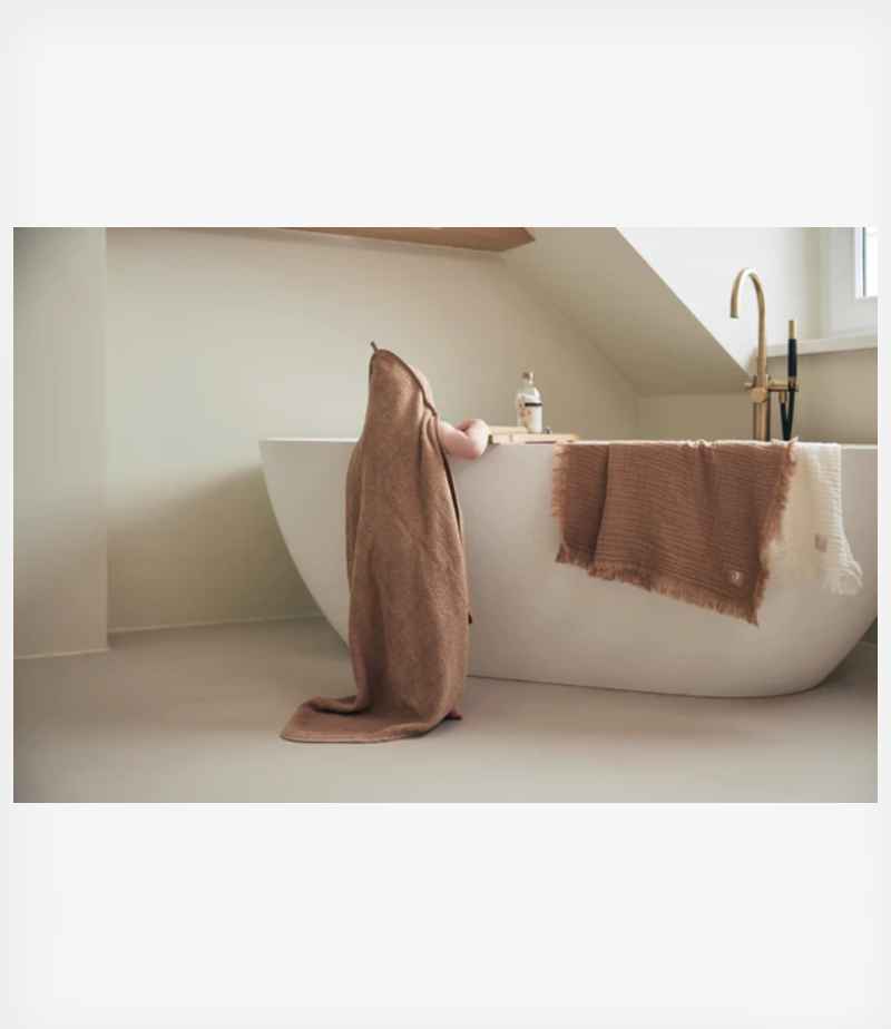 Μετά το μπάνιο ή το κολύμπι, αυτή η πετσέτα με κουκούλα είναι ιδανική. Τυλίγετε αμέσως το μωρό σας ζεστό μόλις βγει από το νερό. Με την κουκούλα καλύπτετε το κεφάλι για να μην χάνει θερμότητα εκεί. Άνετο για το μωρό σας!