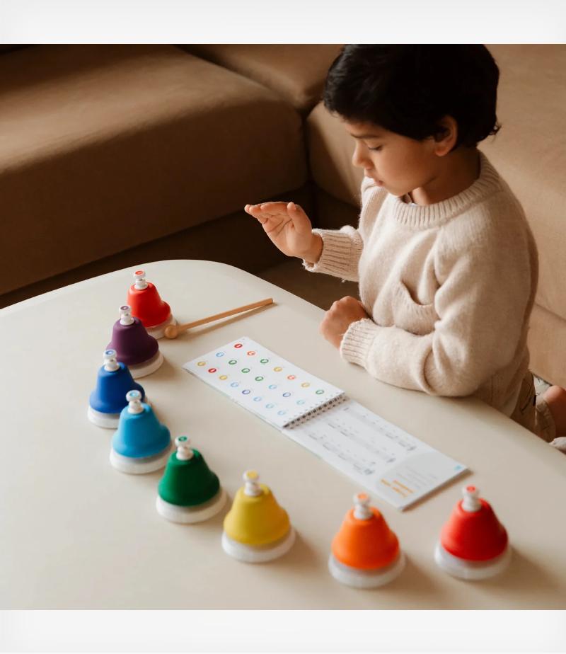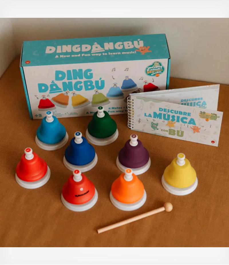 Τα κουδουνάκια Dingdangdong Push είναι ένα μουσικό παιχνίδι σχεδιασμένο για να εισάγει τα παιδιά στον κόσμο της μουσικής από μικρή ηλικία. Περιλαμβάνει 8 κουδουνάκια το καθένα σε διαφορετικό χρώμα, που εκπέμπουν διαφορετικό ήχο όταν τα πατάτε. Δεν χρειάζονται μπαγκέτες ή αξεσουάρ: απλά πατήστε και απολαύστε τον ήχο.
