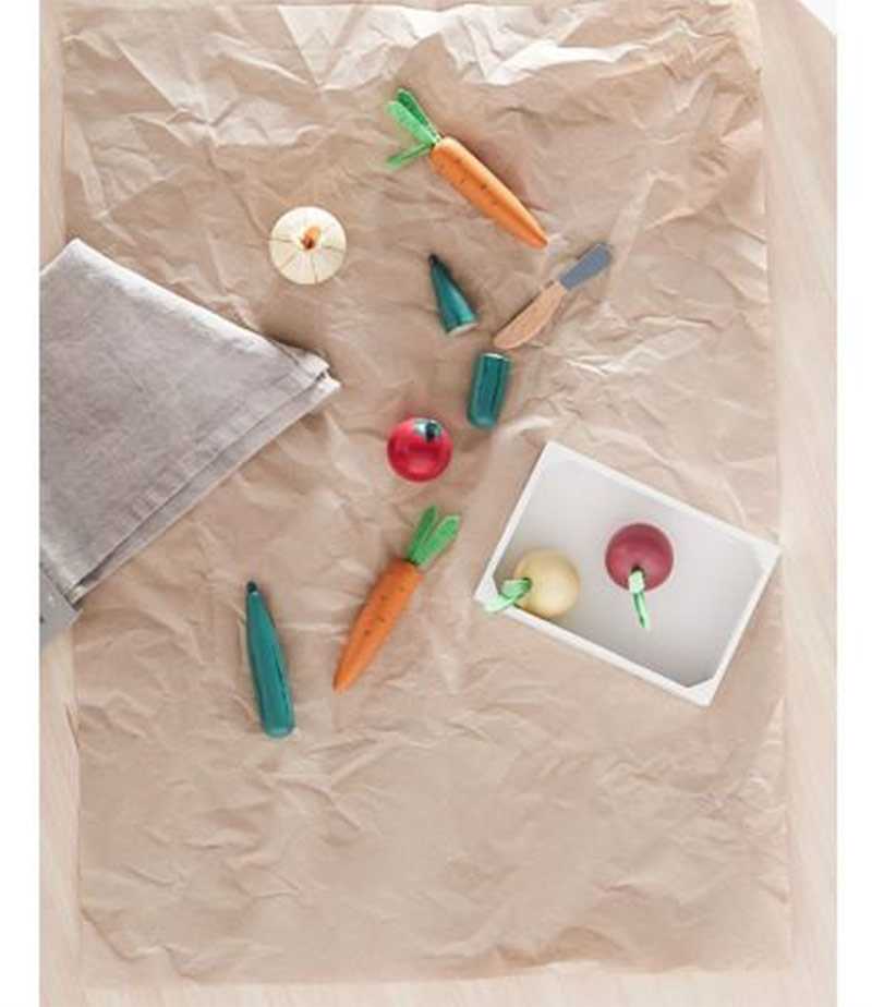 Περιέχει καρότα, ντομάτα, βολβούς, κρεμμύδια, μανιτάρια, λεμόνι, αγγούρι. Το αγγούρι μπορεί να χωριστεί σε δύο κομμάτια και να ενωθεί ξανά με αυτοκόλλητο velcro.