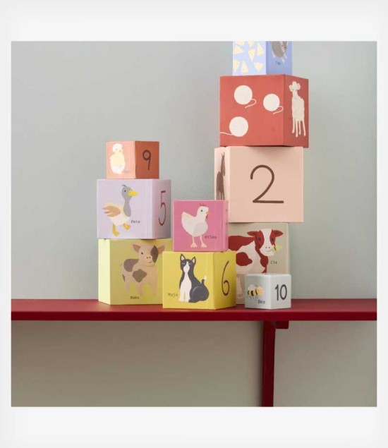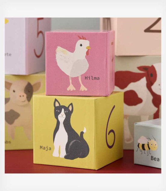 Με αρίθμηση από το 1 έως το 10, κάθε κουτί διαθέτει ένα χαριτωμένο ζωάκι φάρμας, όπως αγελάδα, άλογο, κοτοπουλάκι, γουρουνάκι και πάπια, κάνοντας τη μάθηση διασκεδαστική και ελκυστική.