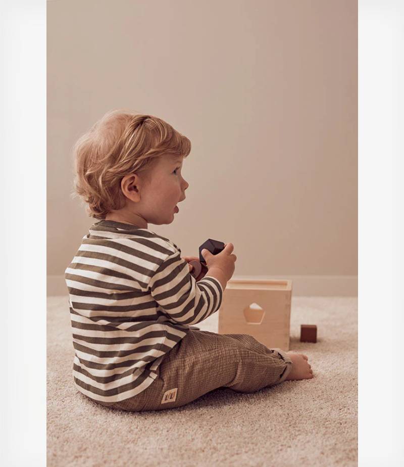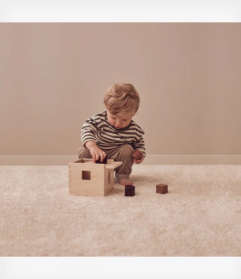 Αυτός ο ξύλινος κύβος ταξινόμησης σχημάτων έχει ξύλινα τουβλάκια σε διαφορετικές αποχρώσεις και σχήματα που ταιριάζουν στα αντίστοιχα ανοίγματά του. Το αφαιρούμενο συρόμενο καπάκι σας βοηθάει να μπορείτε εύκολα να γυρίσετε τον κύβο ανάποδα για να τον αδειάσετε. Μόλις το παιδί σας τοποθετήσει όλα τα τουβλάκια στον κύβο, εσείς μπορείτε απλά να ανοίξετε το καπάκι και να ξεκινήσετε ξανά.