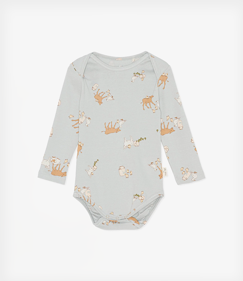 Konges Slojd Βρεφικό Φορμάκι classic ls Body Gots – Farm Blue