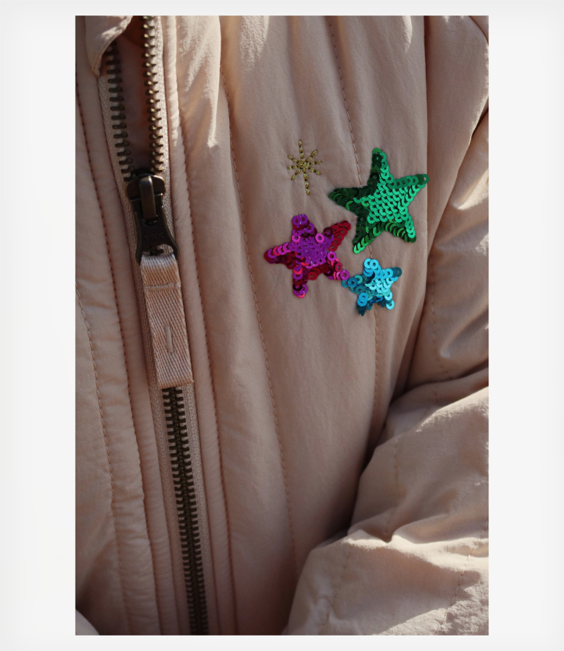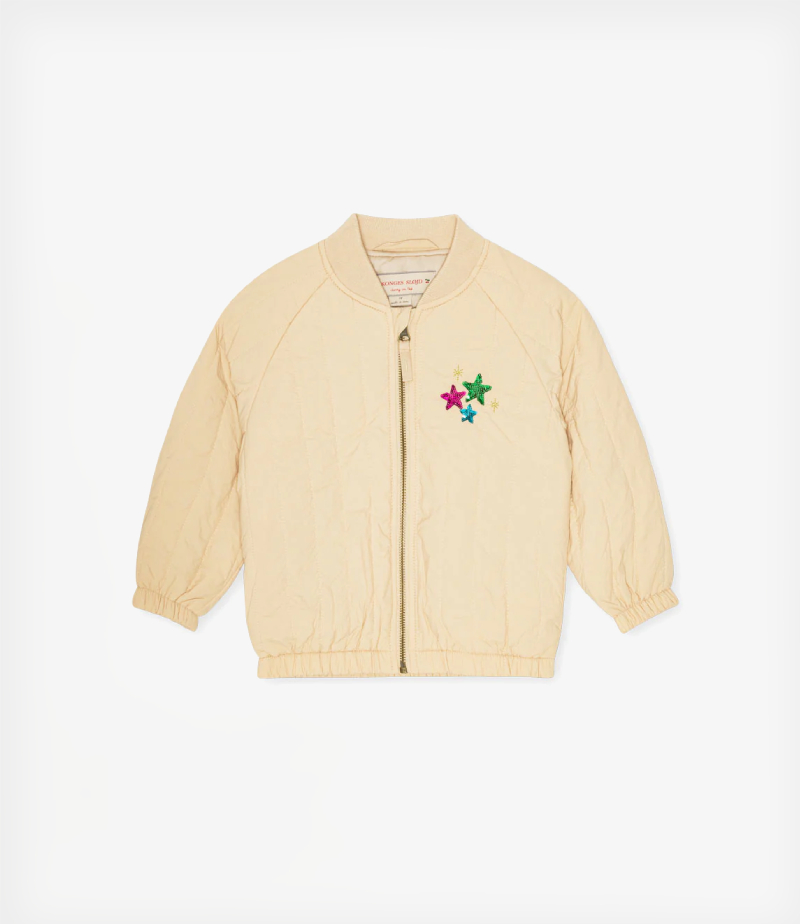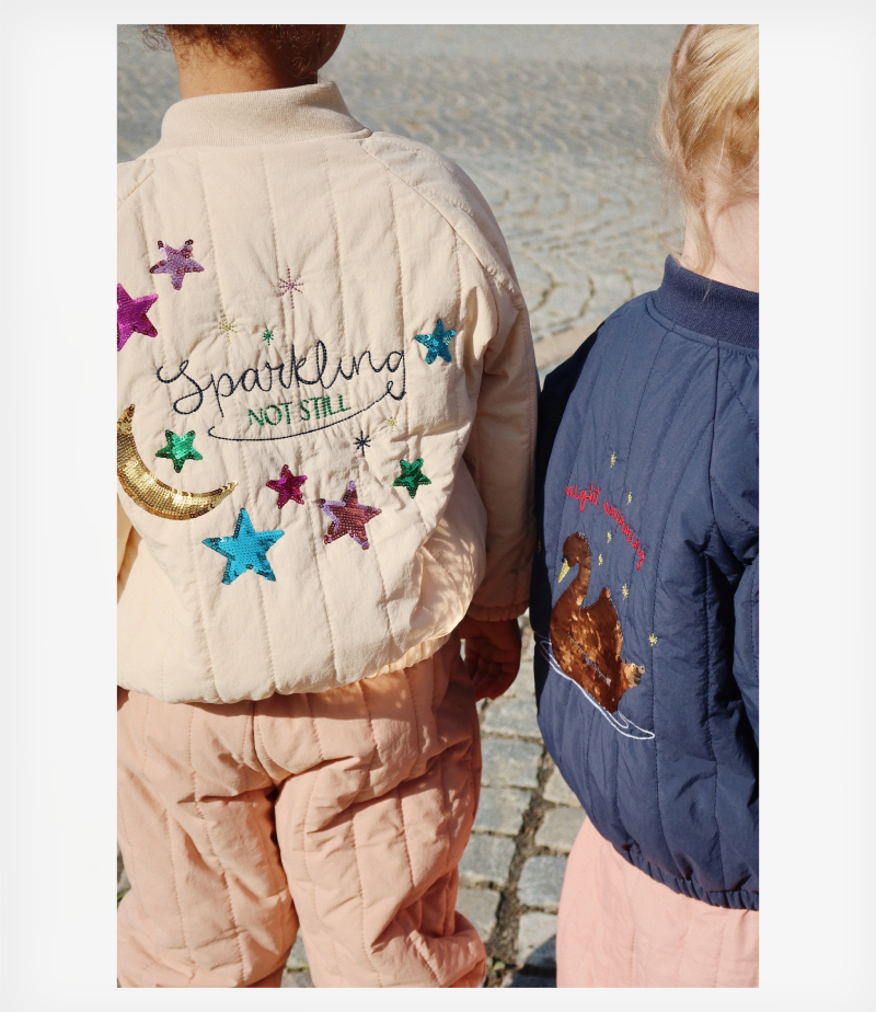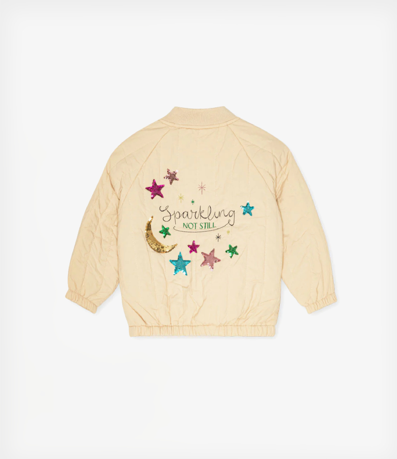 Αυτό το Bomber Jacket σε γήινους χρωματισμούς και με πανέμορφες λεπτομέρειες από παγιέτες στην πλάτη από την Konges Slojd είναι το απόλυτο must have για την γκαρνταρόμπα των μικρών σας αυτόν τον Φθινοπωρινό-Χειμώνα.