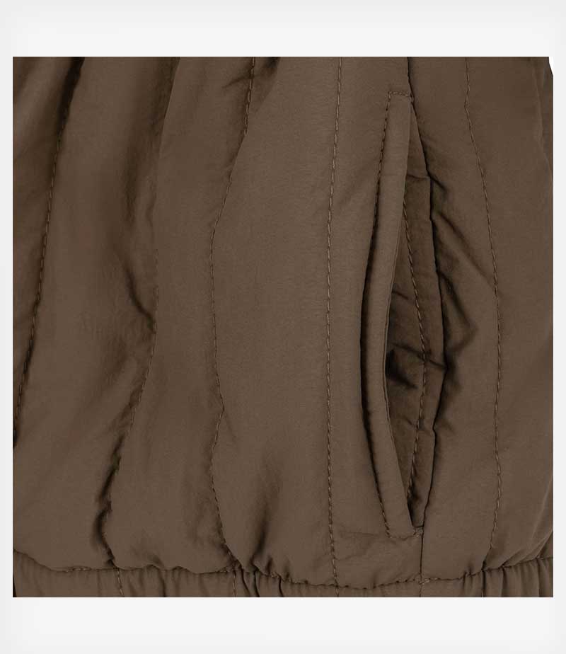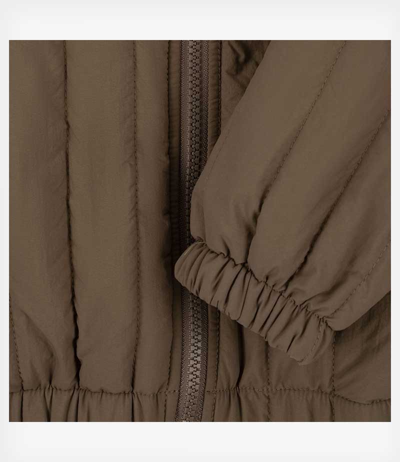 Το ζεστό μπουφάν είναι αντιανεμικό και επεξεργασμένο με υδατοαπωθητική επίστρωση. Το ύφασμα είναι κατασκευασμένο από πολυεστέρα, που είναι ζεστό, άνετο και ανθεκτικό.