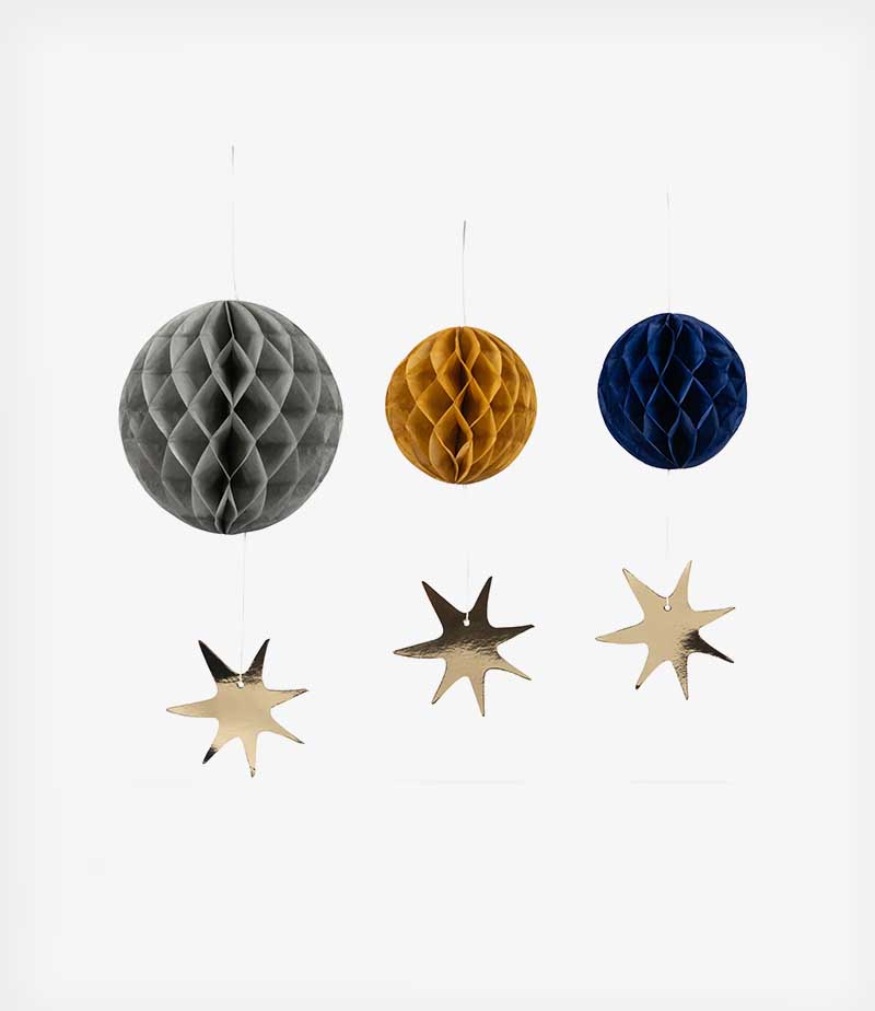 Κύπελλα: χαρτί. Πιάτα: χαρτί. Χαρτοπετσέτες: χαρτί. Γιρλάντα: χαρτί και βαμβακερό κορδόνι. Μπαλόνι: φύλλο αλουμινίου. Τοπέρς τούρτας: χαρτί σε ξυλάκι από μπαμπού.