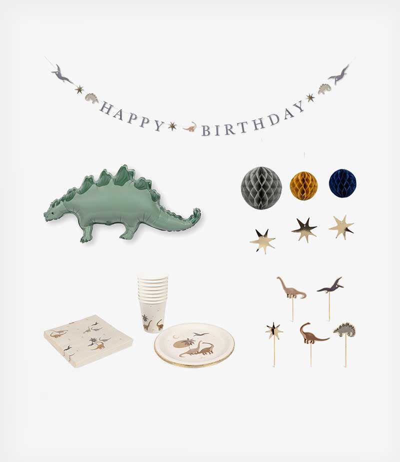 Κιτ γενεθλίων με διάφορα αντικείμενα για οποιαδήποτε γιορτή με θέμα dino.