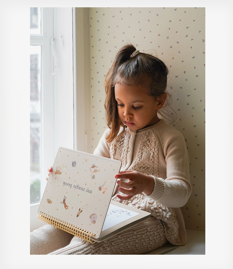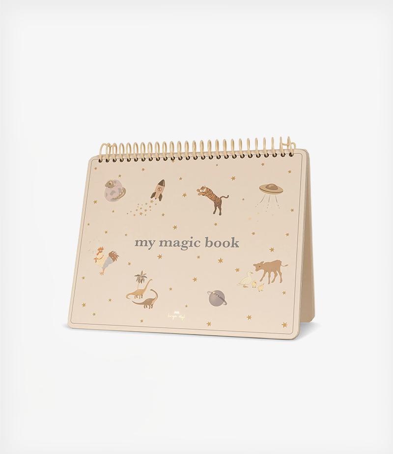 Μαγικό βιβλίο ζωγραφικής με νερό από χαρτί πιστοποιημένο από την FSC. Περιλαμβάνει έξι επαναχρησιμοποιούμενες σελίδες και ένα στυλό βούρτσας νερού που ξαναγεμίζει.